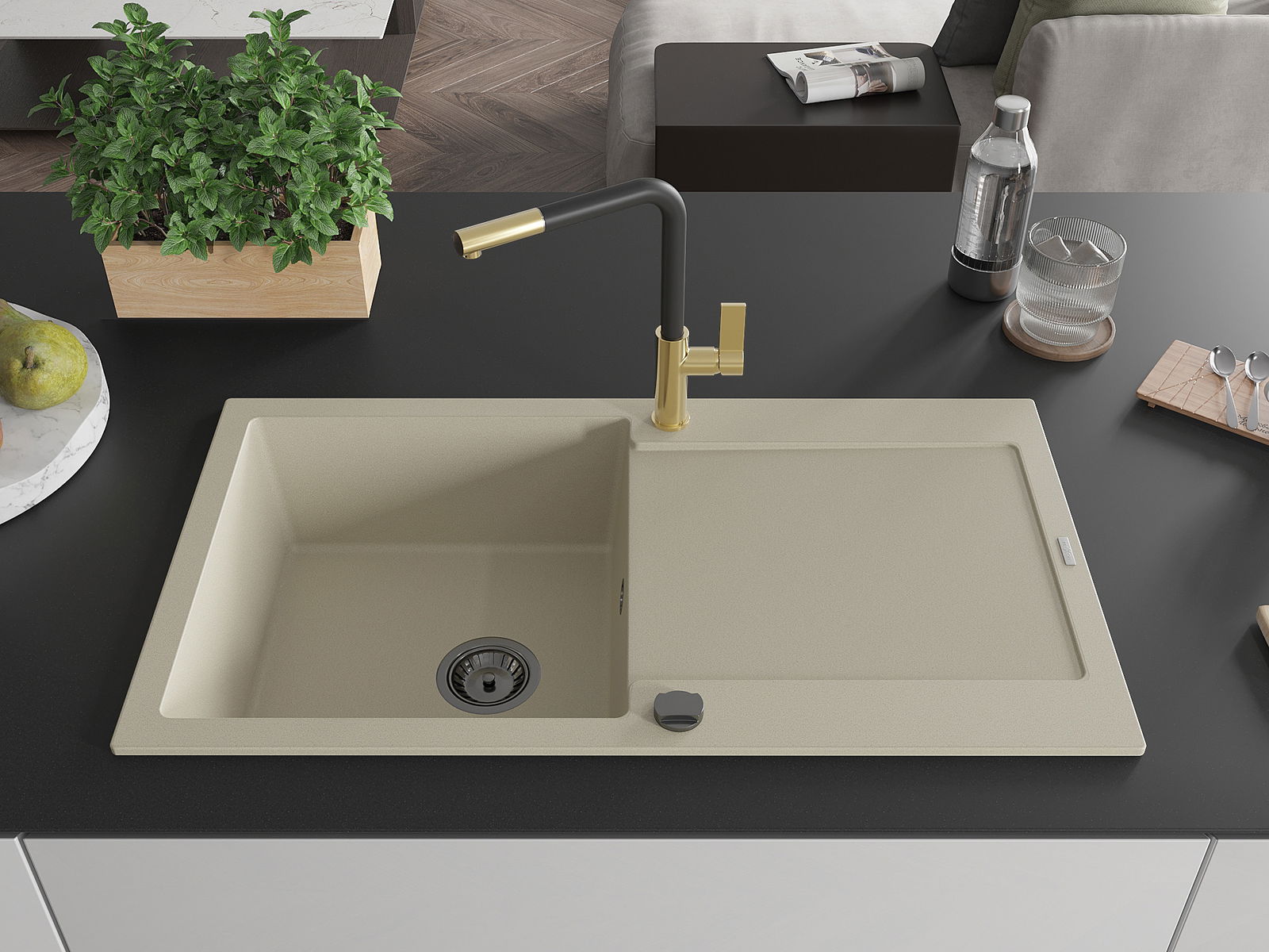 Dřez byl vyroben z vysoce kvalitního granitu. Představuje elegantní a především praktický doplněk každé kuchyně, bez ohledu na její styl. Vysoká kvalita a trvanlivost granitu zajišťují dlouholeté používání.