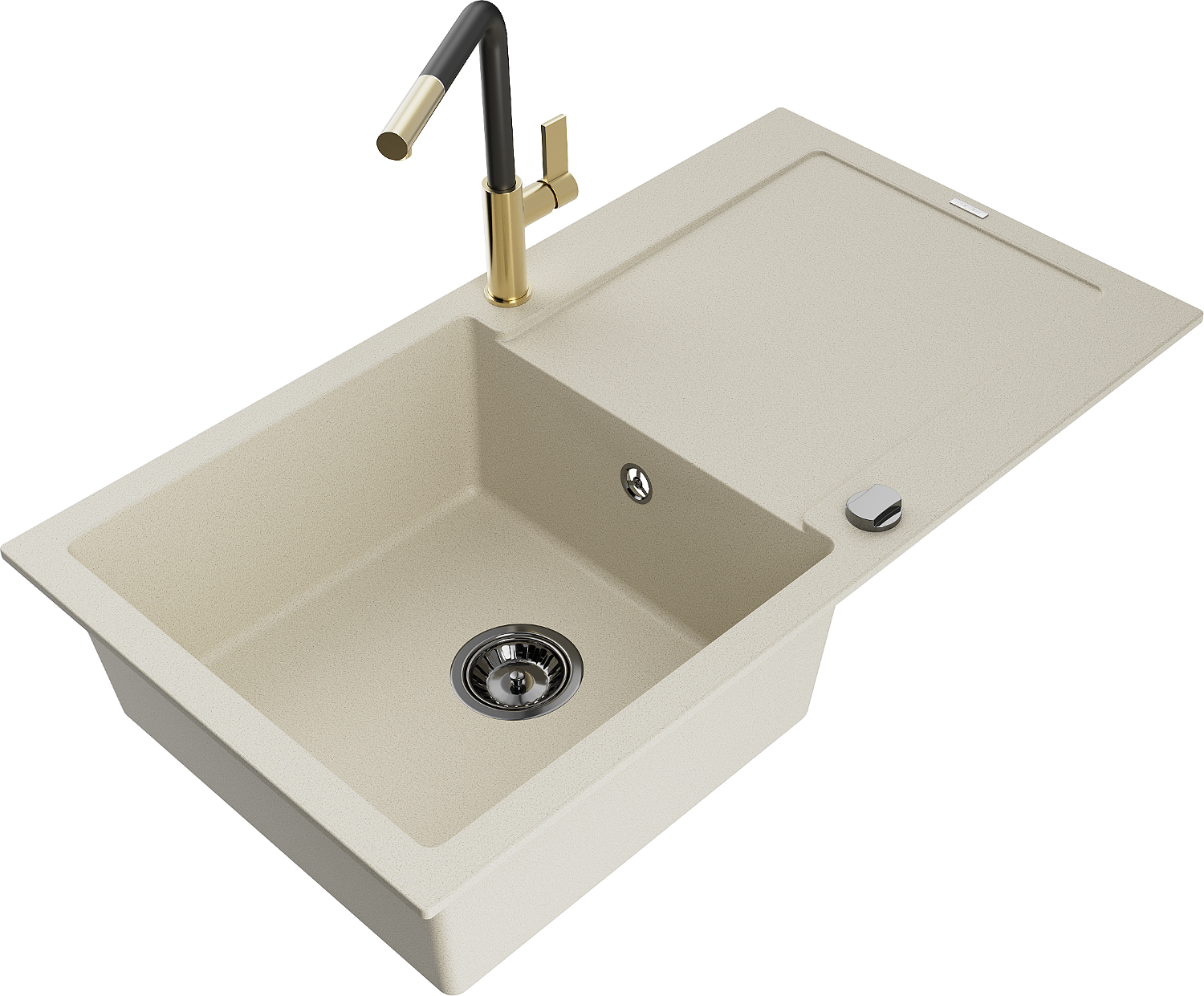 Povrch dřezu je odolný proti skvrnám a zabarvení, což usnadňuje jeho čištění a zachovává jeho barvu po dlouhou dobu používání. Estetický a praktický doplněk každé kuchyně.