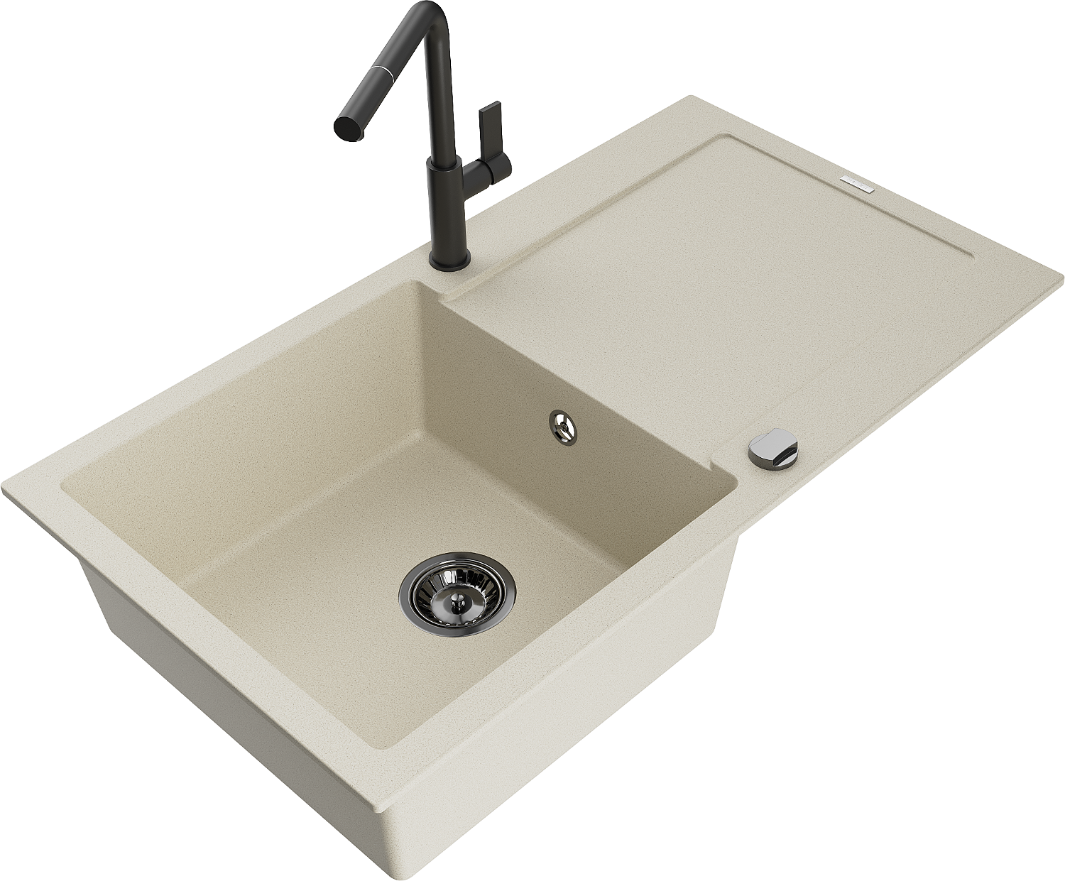 Povrch dřezu je odolný proti skvrnám a zabarvení, což usnadňuje jeho čištění a zachovává jeho barvu po dlouhou dobu používání. Estetický a praktický doplněk každé kuchyně.