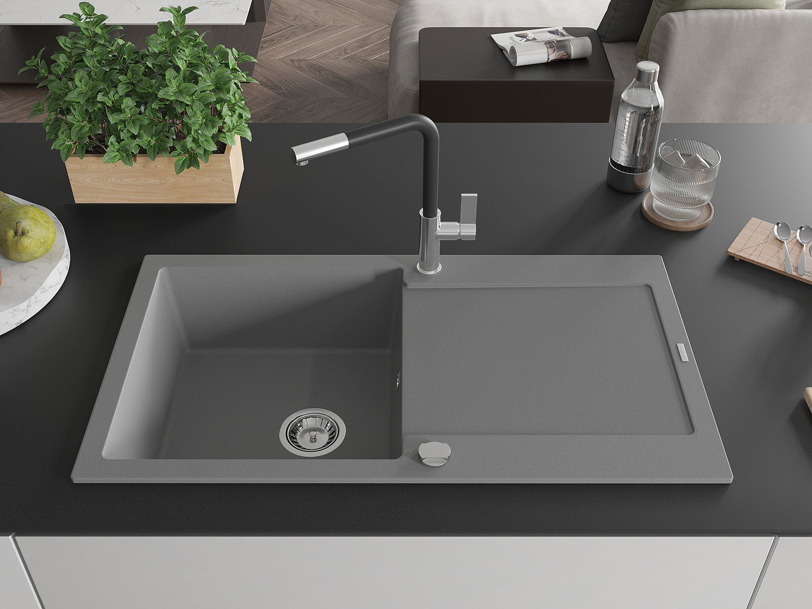 Dřez byl vyroben z vysoce kvalitního granitu. Představuje elegantní a především praktický doplněk každé kuchyně, bez ohledu na její styl. Vysoká kvalita a trvanlivost granitu zajišťují dlouholeté používání.