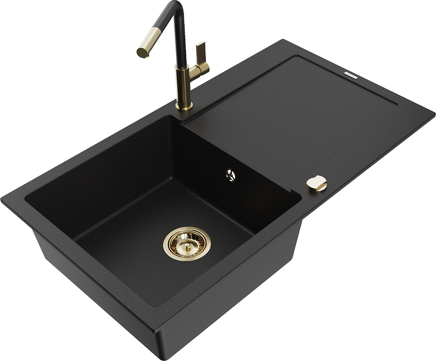 Mexen Leo granitový dřez 1-komorový s odkapávačem a kuchyňskou baterií Flora, černý - 6501-77-670401-57-G