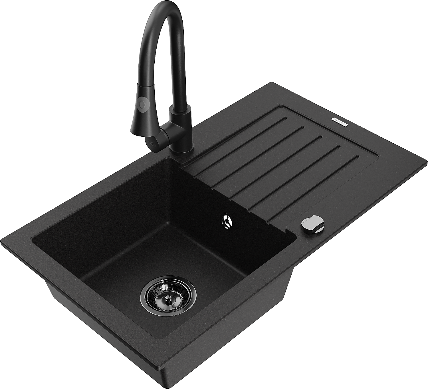 Mexen Pablo granitový dřez s odkapávačem a kuchyňskou baterií Elia, černý - 6510-77-670101-70-B