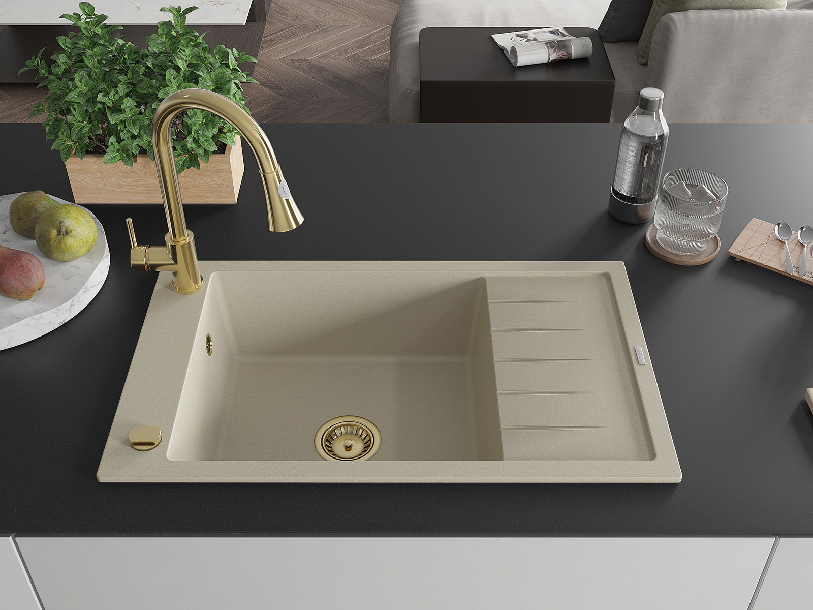 Dřez byl vyroben z vysoce kvalitního granitu. Představuje elegantní a především praktický doplněk každé kuchyně, bez ohledu na její styl. Vysoká kvalita a trvanlivost granitu zajišťují dlouholeté používání.