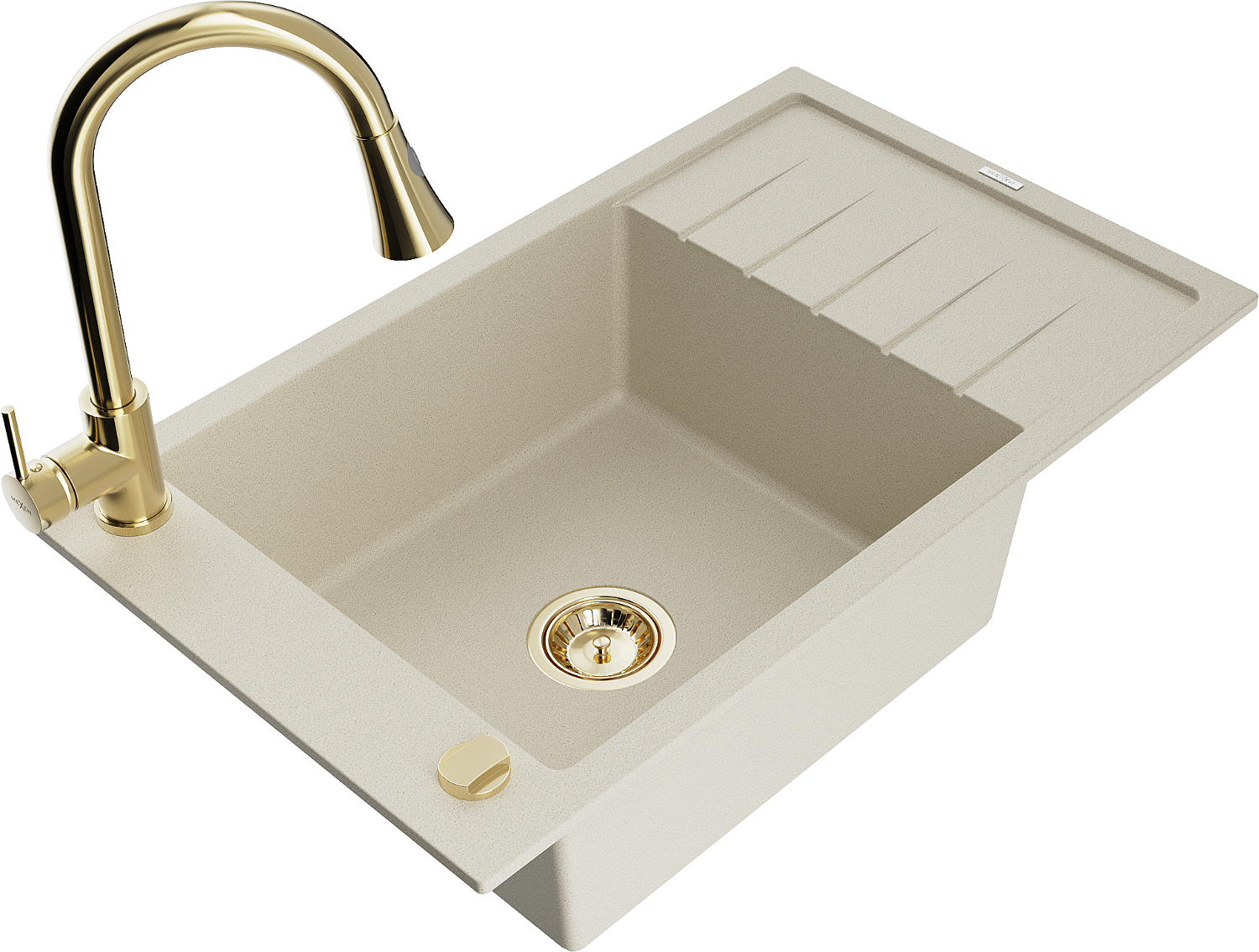 Mexen Elias granitový dřez 1-komorový s odkapávačem a kuchyňskou baterií Elia, béžový - 6511-69-670101-50