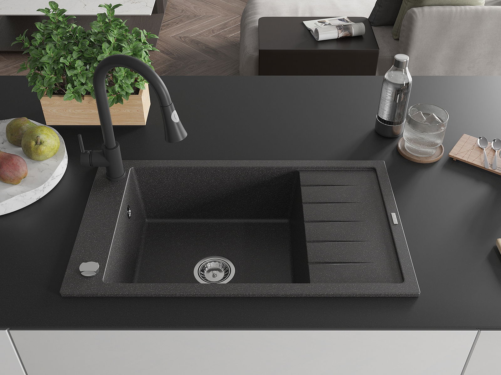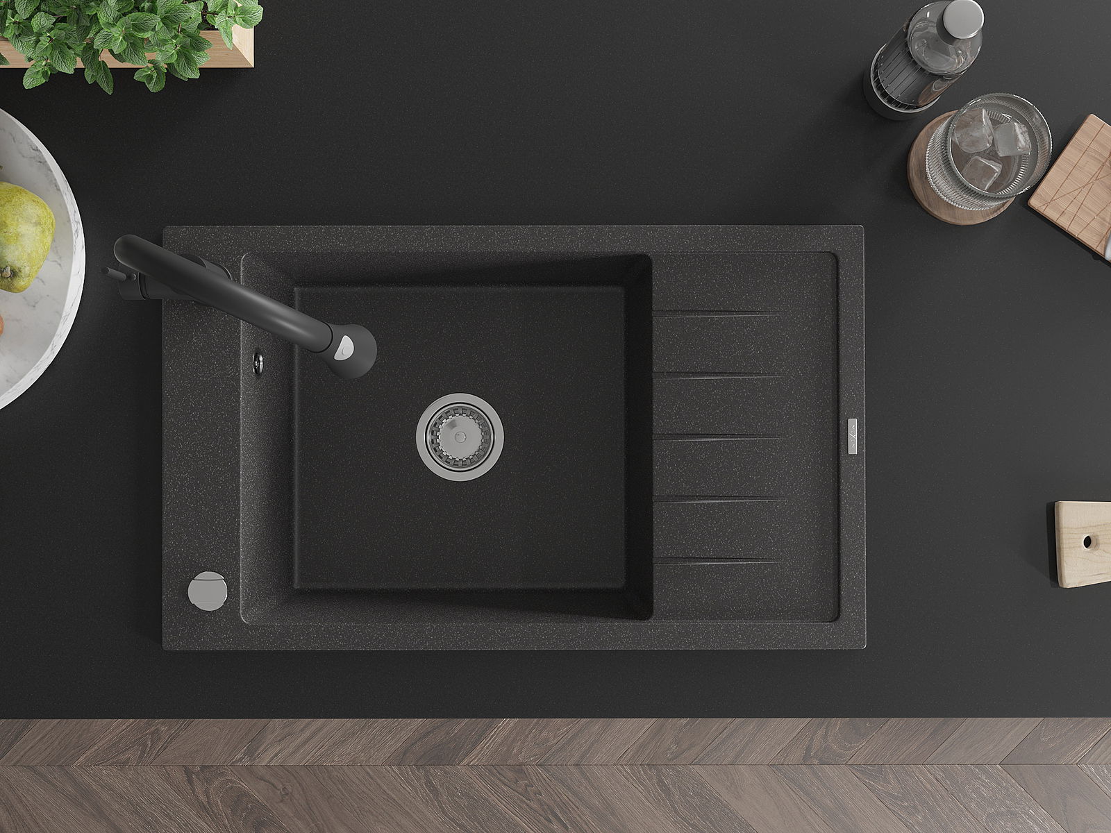 Dřez byl vyroben z vysoce kvalitního granitu. Představuje elegantní a především praktický doplněk každé kuchyně, bez ohledu na její styl. Vysoká kvalita a trvanlivost granitu zajišťují dlouholeté používání.