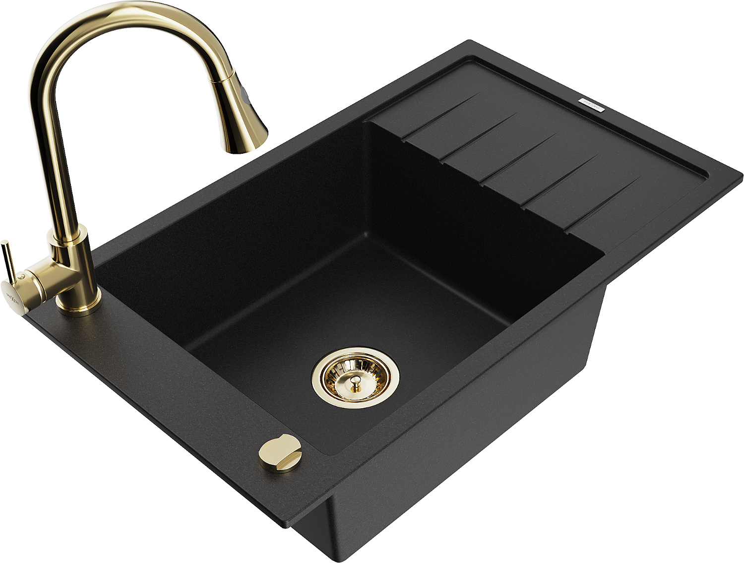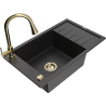 Mexen Elias granitový dřez s 1 komorou a odkapávačem a kuchyňskou baterií Elia, černý - 6511-77-670101-50