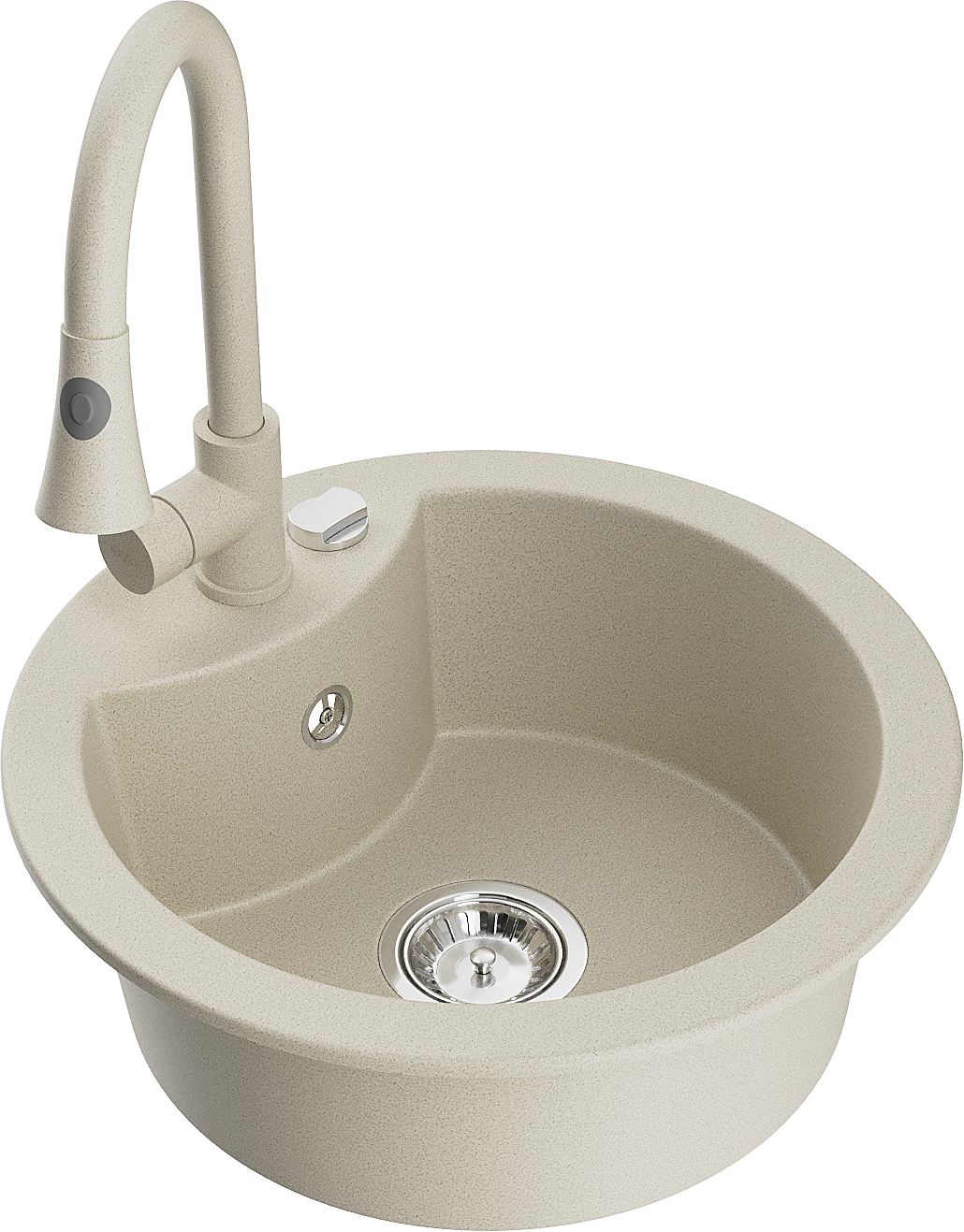 Mexen Diego granitový dřez 1-komorový s kuchyňskou baterií Elia, béžový - 6512-69-670101-69
