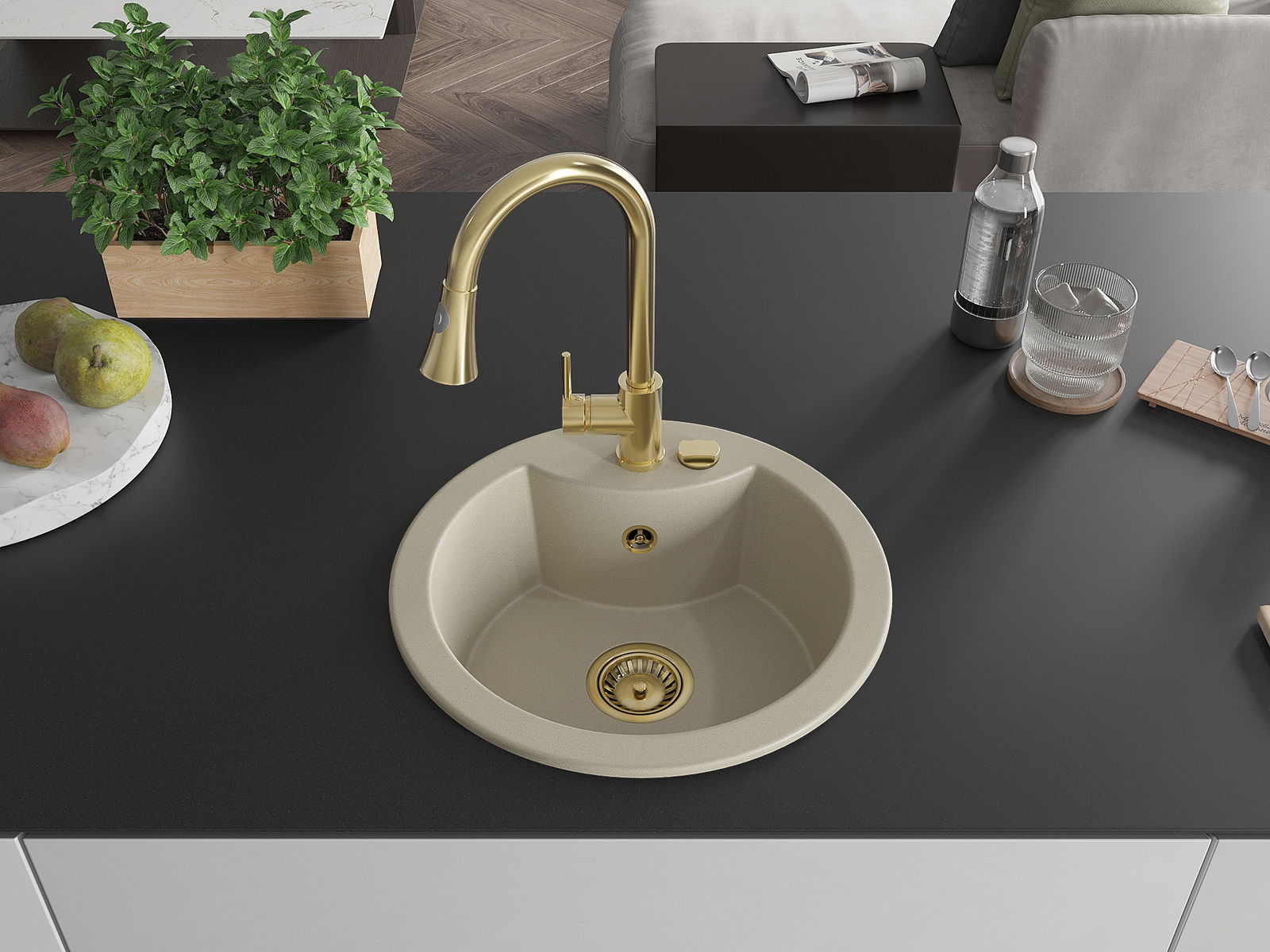 Dřez byl vyroben z vysoce kvalitního granitu. Představuje elegantní a především praktický doplněk každé kuchyně, bez ohledu na její styl. Vysoká kvalita a trvanlivost granitu zajišťují dlouholeté používání.