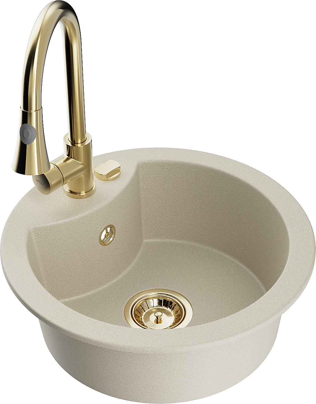 Mexen Diego granitový dřez s 1 komorou s kuchyňskou baterií Elia, béžový - 6512-69-670101-50