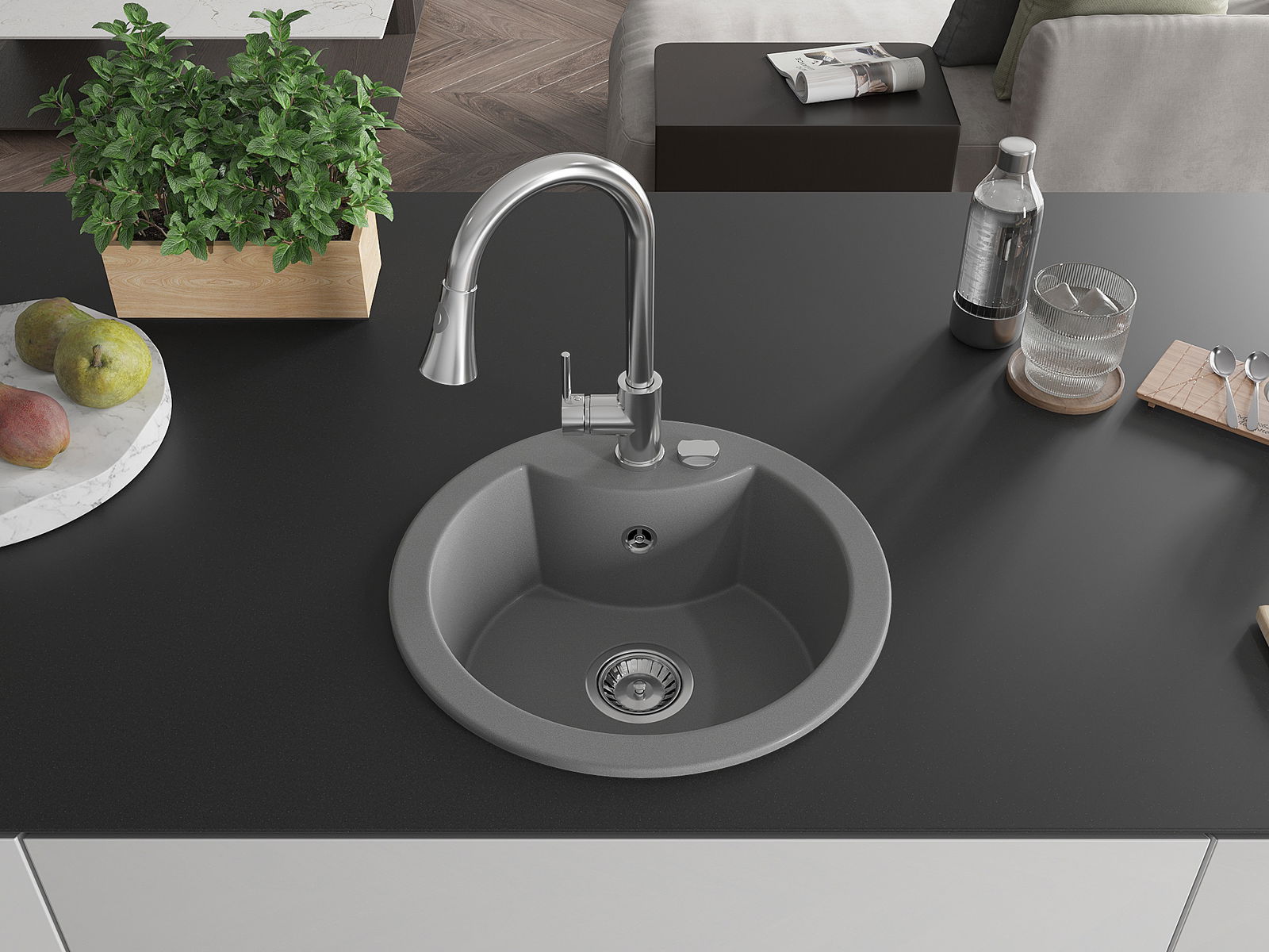 Dřez byl vyroben z vysoce kvalitního granitu. Představuje elegantní a především praktický doplněk každé kuchyně, bez ohledu na její styl. Vysoká kvalita a trvanlivost granitu zajišťují dlouholeté používání.