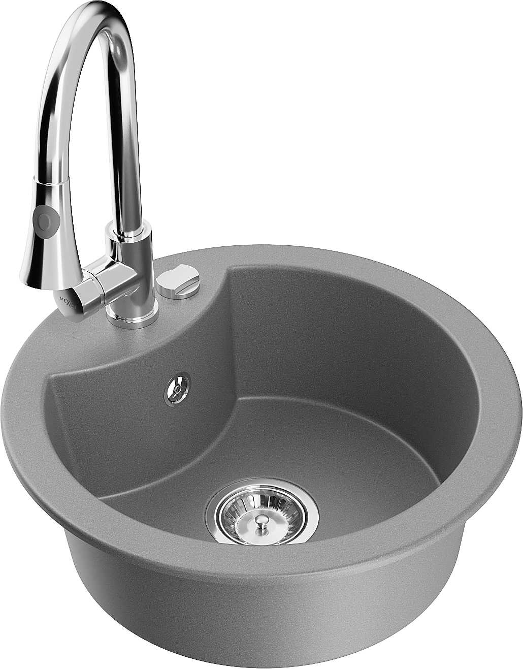Mexen Diego granitový dřez 1-komorový s kuchyňskou baterií Elia, šedý - 6512-71-670101-00