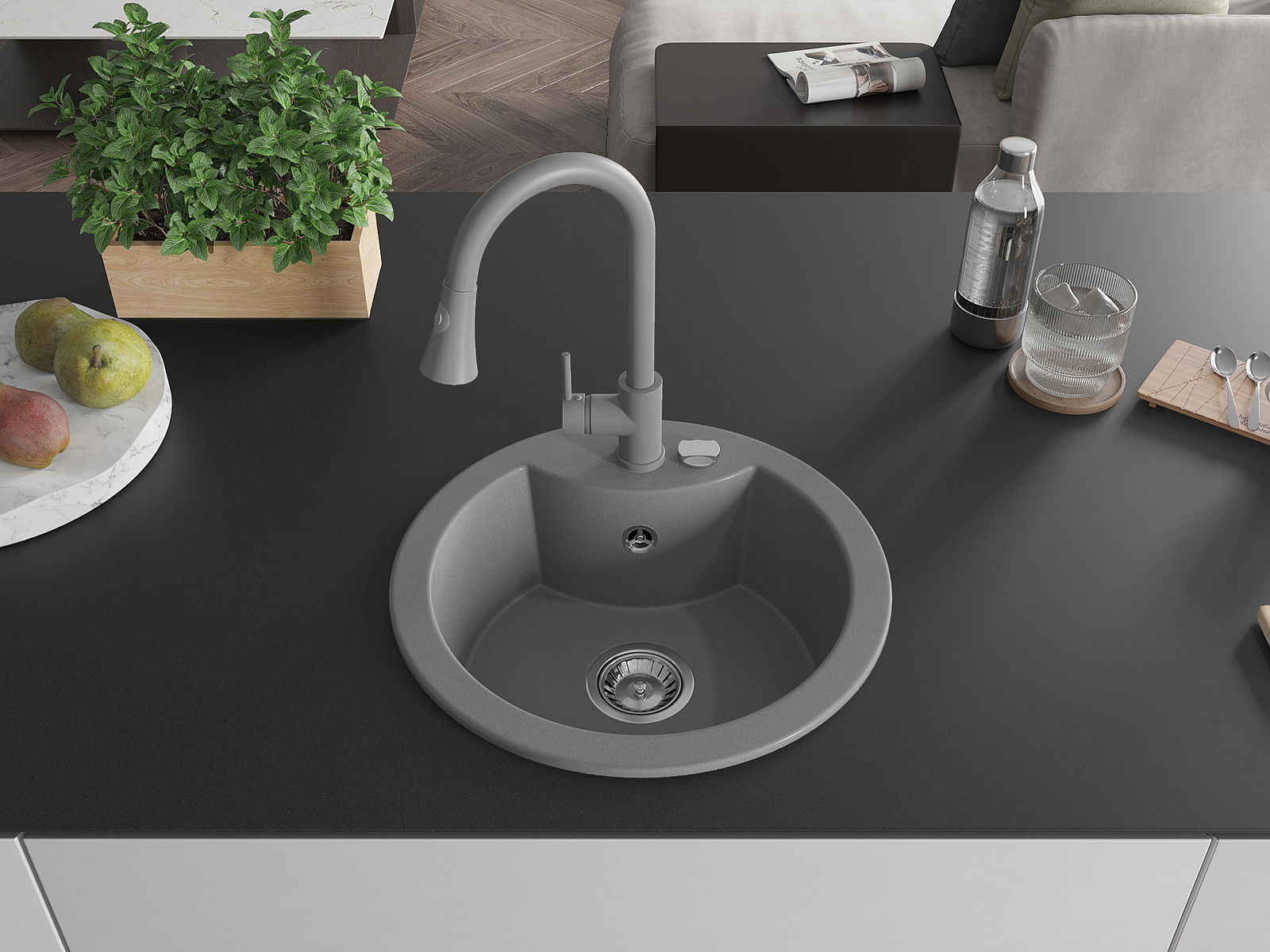 Mexen Diego granitový dřez jednokomorový s kuchyňskou baterií Elia, šedý - 6512-71-670101-71
