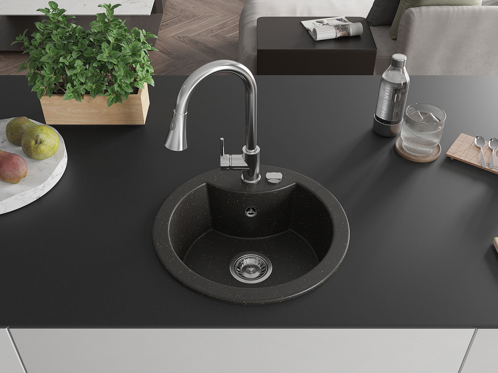 Dřez byl vyroben z vysoce kvalitního granitu. Představuje elegantní a především praktický doplněk každé kuchyně, bez ohledu na její styl. Vysoká kvalita a trvanlivost granitu zajišťují dlouholeté používání.