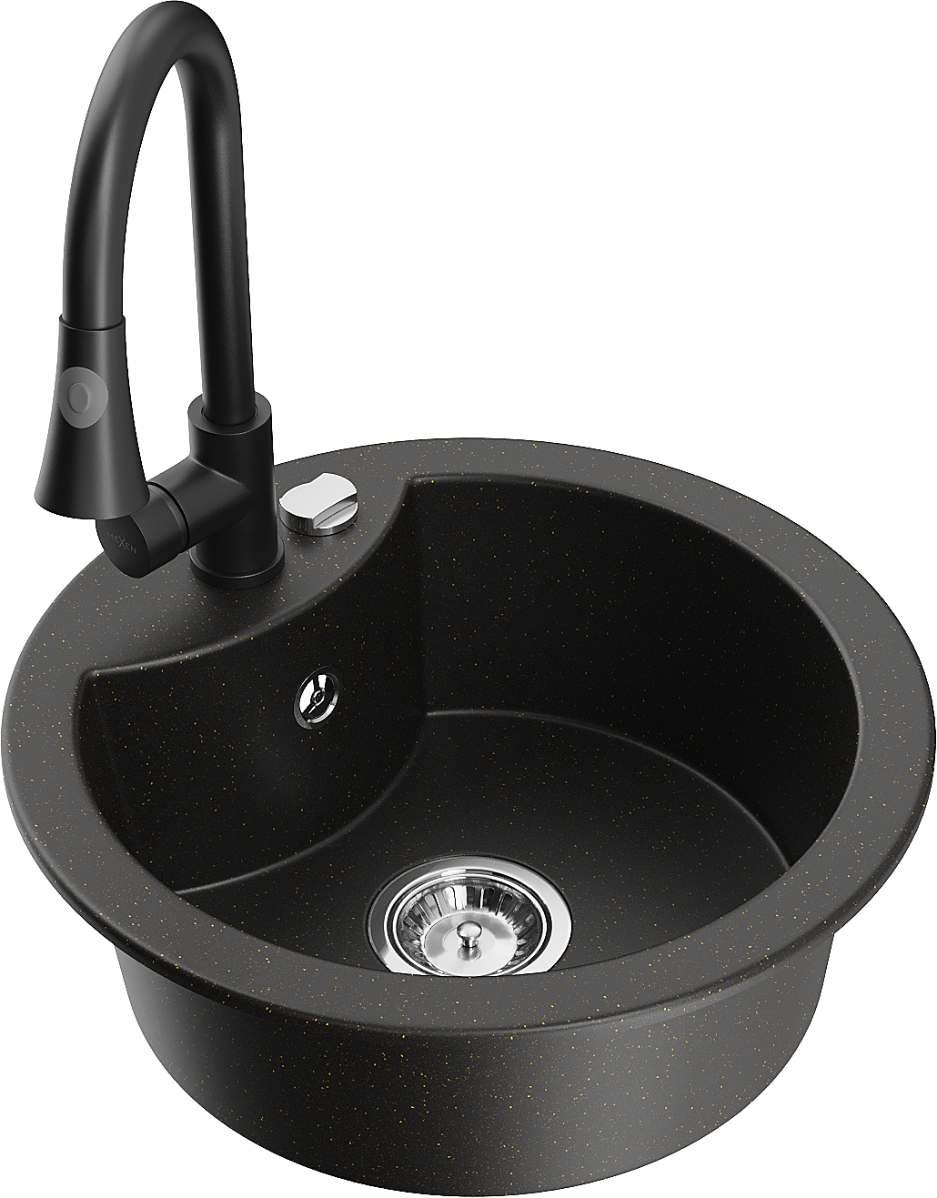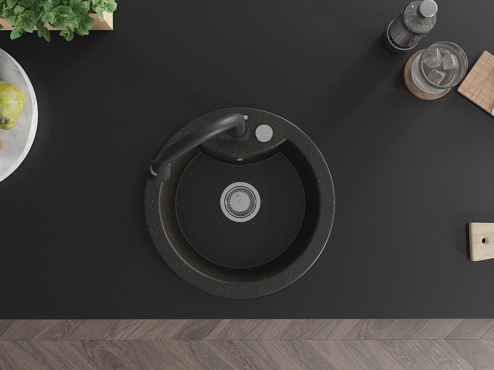 Mexen Diego granitový dřez s 1 komorou a kuchyňskou baterií Elia, černý/zlatý metalický - 6512-75-670101-70