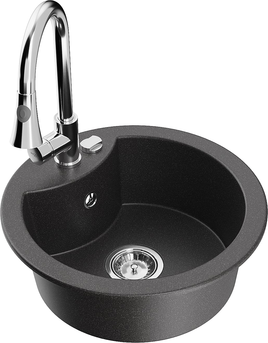 Mexen Diego granitový dřez s 1 komorou a kuchyňskou baterií Elia, černý s tečkami - 6512-76-670101-00
