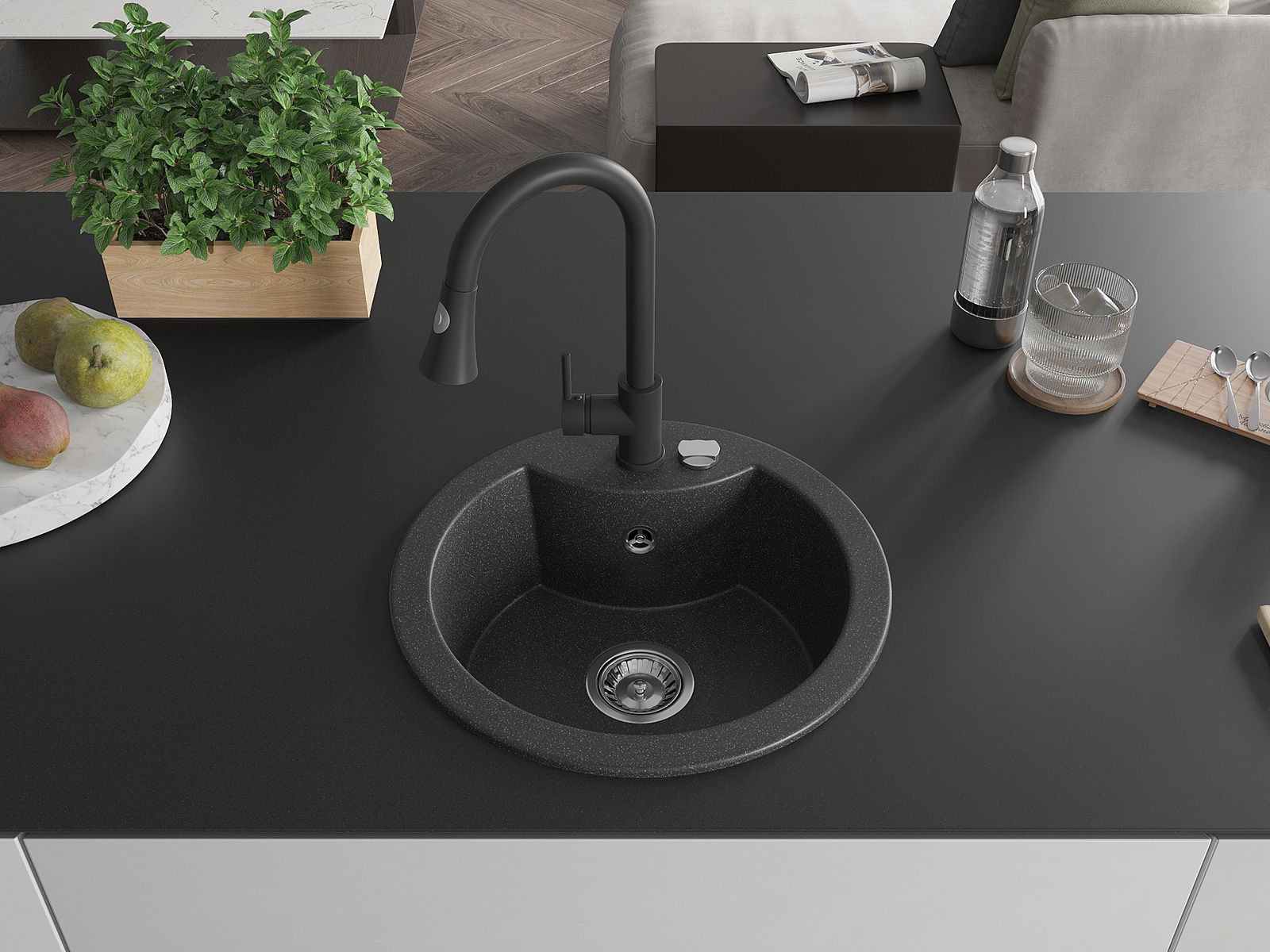 Dřez byl vyroben z vysoce kvalitního granitu. Představuje elegantní a především praktický doplněk každé kuchyně, bez ohledu na její styl. Vysoká kvalita a trvanlivost granitu zajišťují dlouholeté používání.