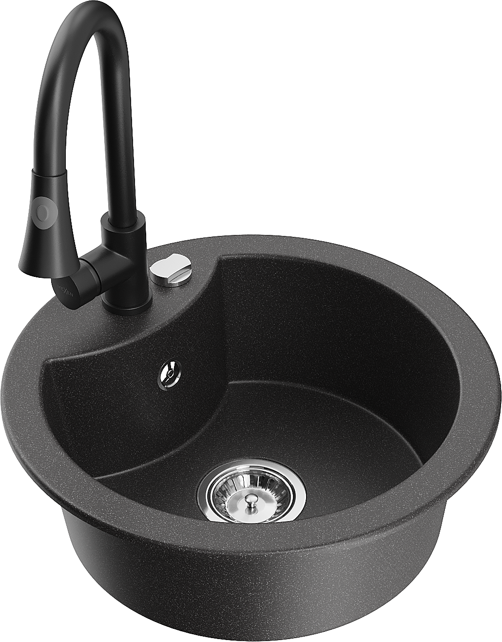 • Mexen Diego granitový dřez 1-komorový s kuchyňskou baterií Elia, černý kropenatý - 6512-76-670101-70
