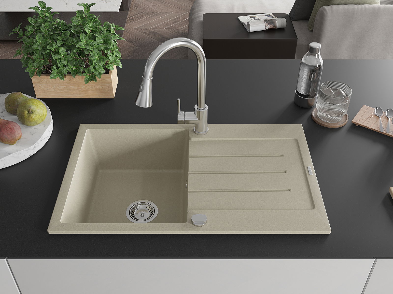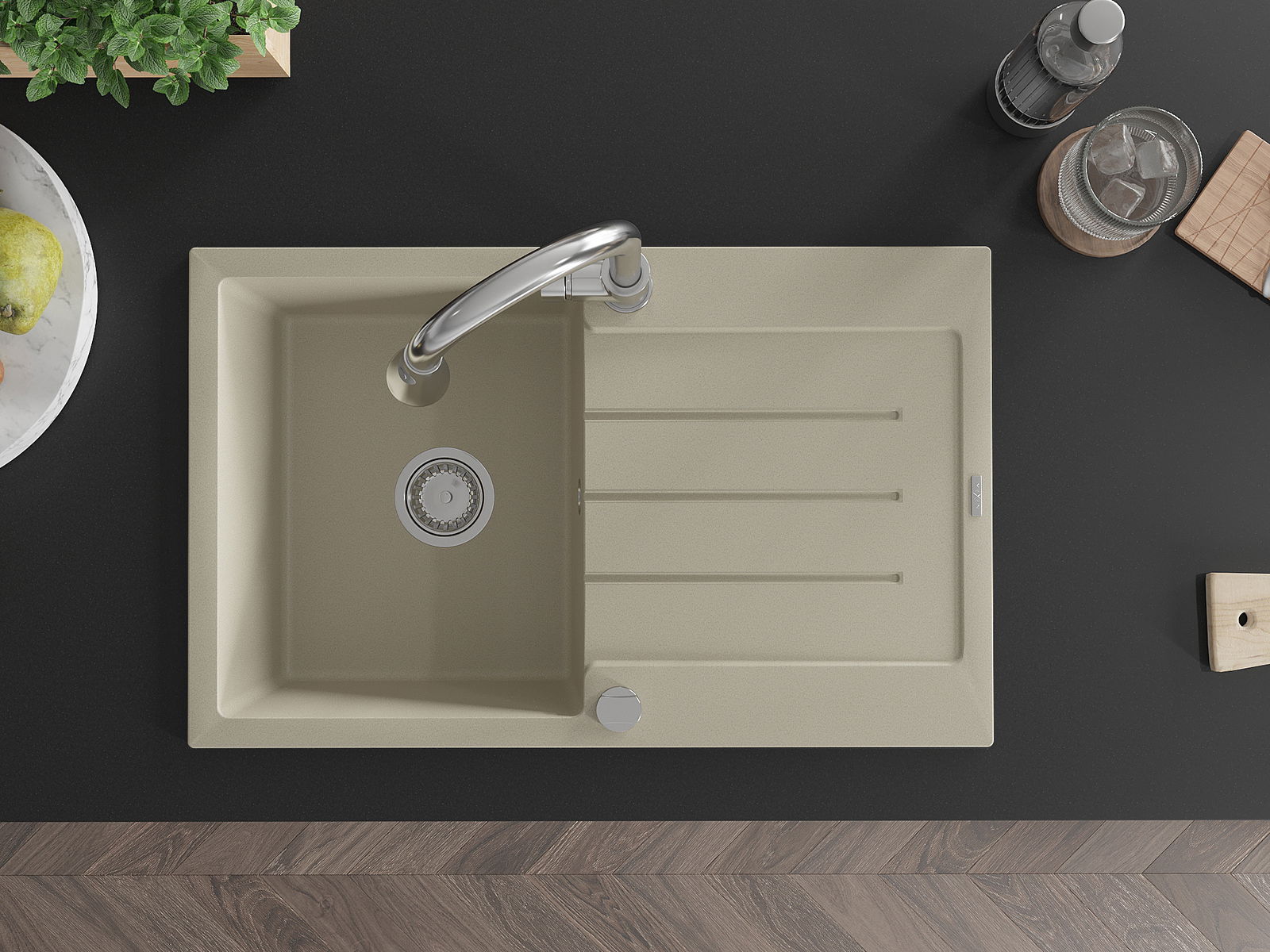 Dřez byl vyroben z vysoce kvalitního granitu. Představuje elegantní a především praktický doplněk každé kuchyně, bez ohledu na její styl. Vysoká kvalita a trvanlivost granitu zajišťují dlouholeté používání.