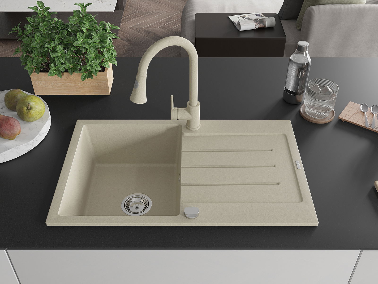Dřez byl vyroben z vysoce kvalitního granitu. Představuje elegantní a především praktický doplněk každé kuchyně, bez ohledu na její styl. Vysoká kvalita a trvanlivost granitu zajišťují dlouholeté používání.