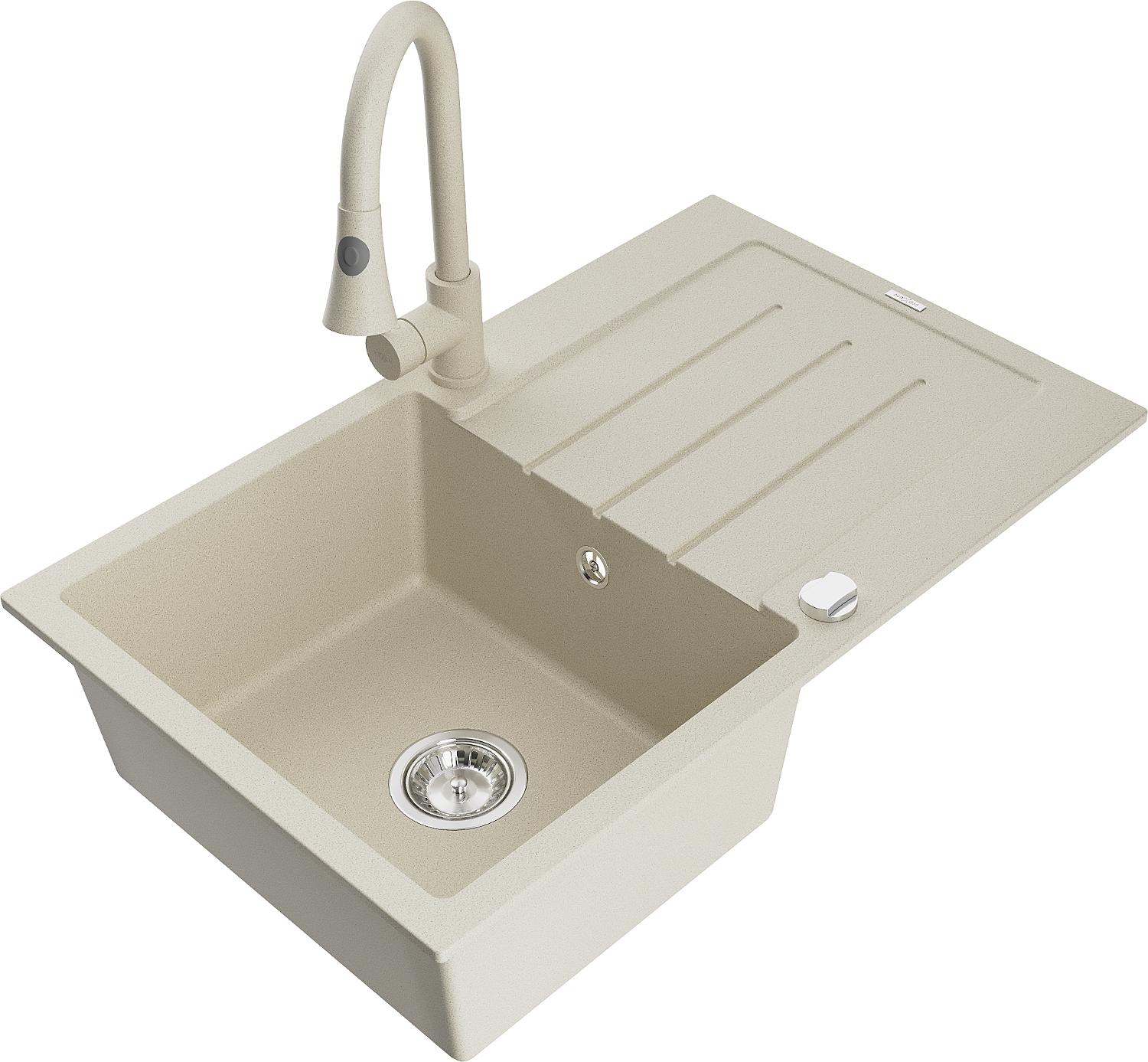 Mexen Bruno granitový dřez 1-komorový s odkapávačem a kuchyňskou baterií Elia, béžový - 6513-69-670101-69