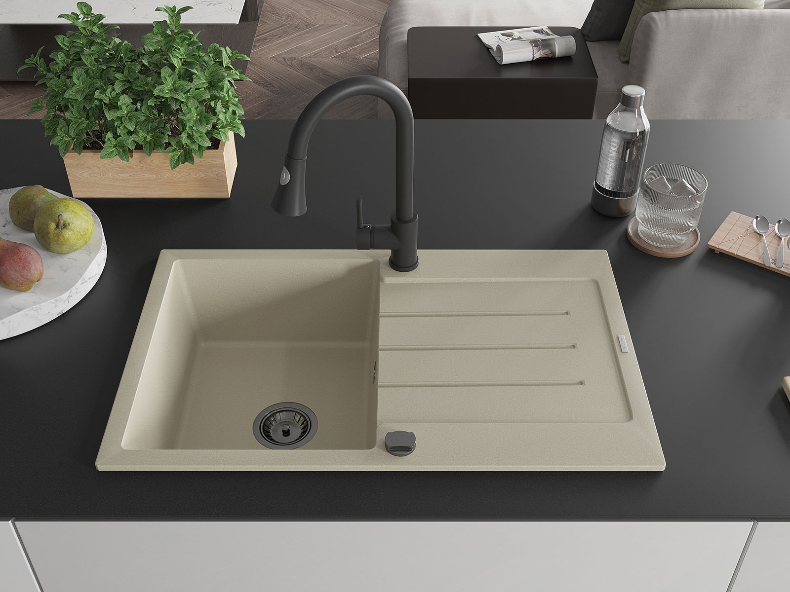 Dřez byl vyroben z vysoce kvalitního granitu. Představuje elegantní a především praktický doplněk každé kuchyně, bez ohledu na její styl. Vysoká kvalita a trvanlivost granitu zajišťují dlouholeté používání.