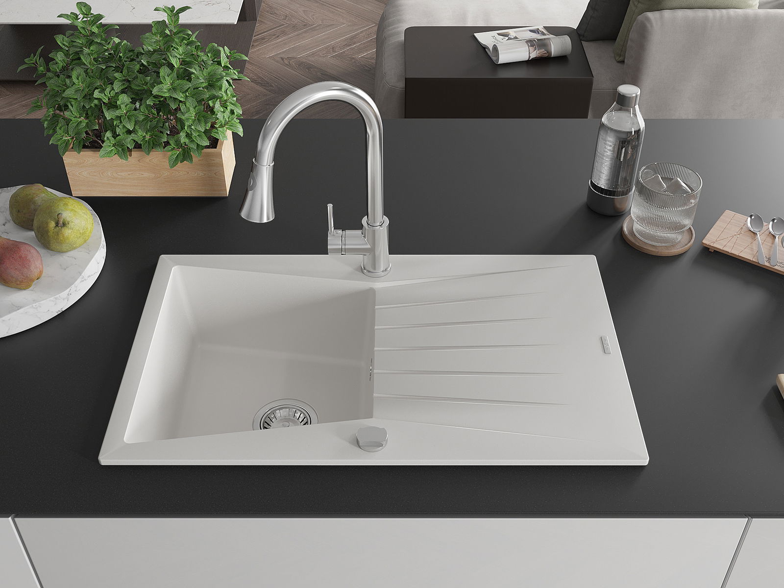 Dřez byl vyroben z vysoce kvalitního granitu. Představuje elegantní a především praktický doplněk každé kuchyně, bez ohledu na její styl. Vysoká kvalita a trvanlivost granitu zajišťují dlouholeté používání.