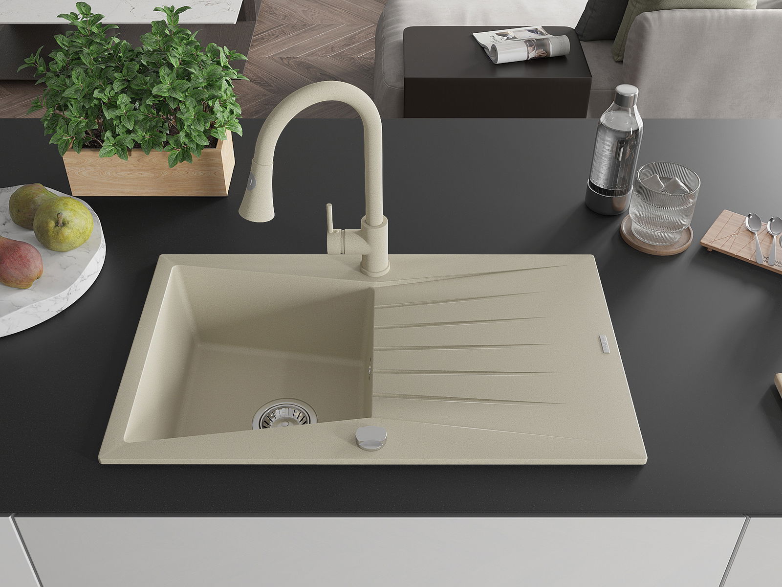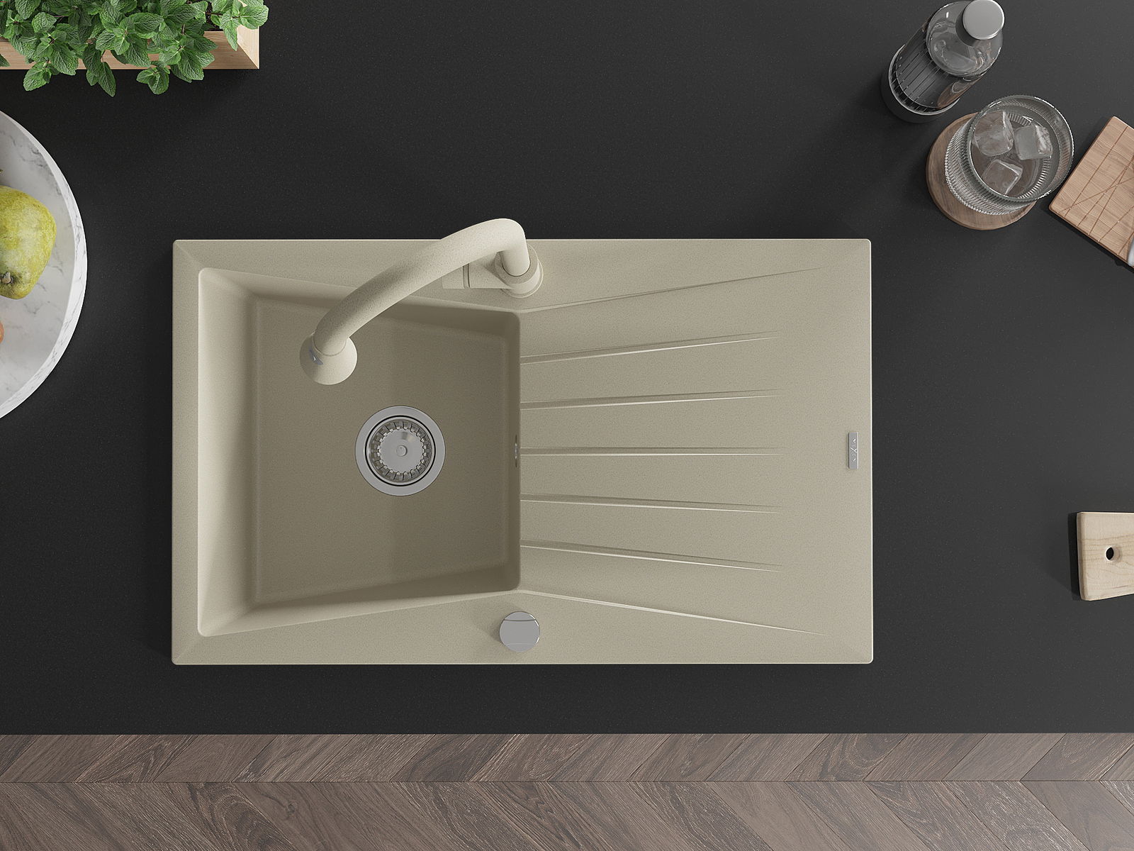 Dřez byl vyroben z vysoce kvalitního granitu. Představuje elegantní a především praktický doplněk každé kuchyně, bez ohledu na její styl. Vysoká kvalita a trvanlivost granitu zajišťují dlouholeté používání.