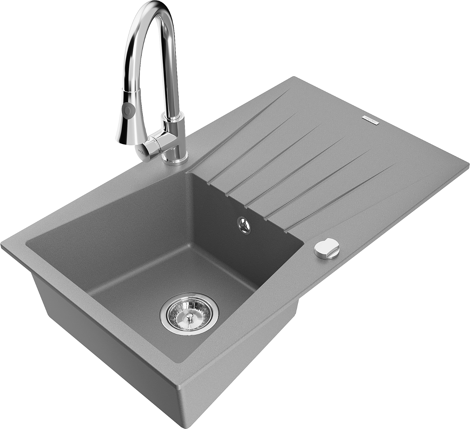 Mexen Cesar granitový dřez 1-komorový s odkapávačem a kuchyňskou baterií Elia, šedý - 6514-71-670101-00