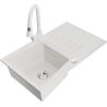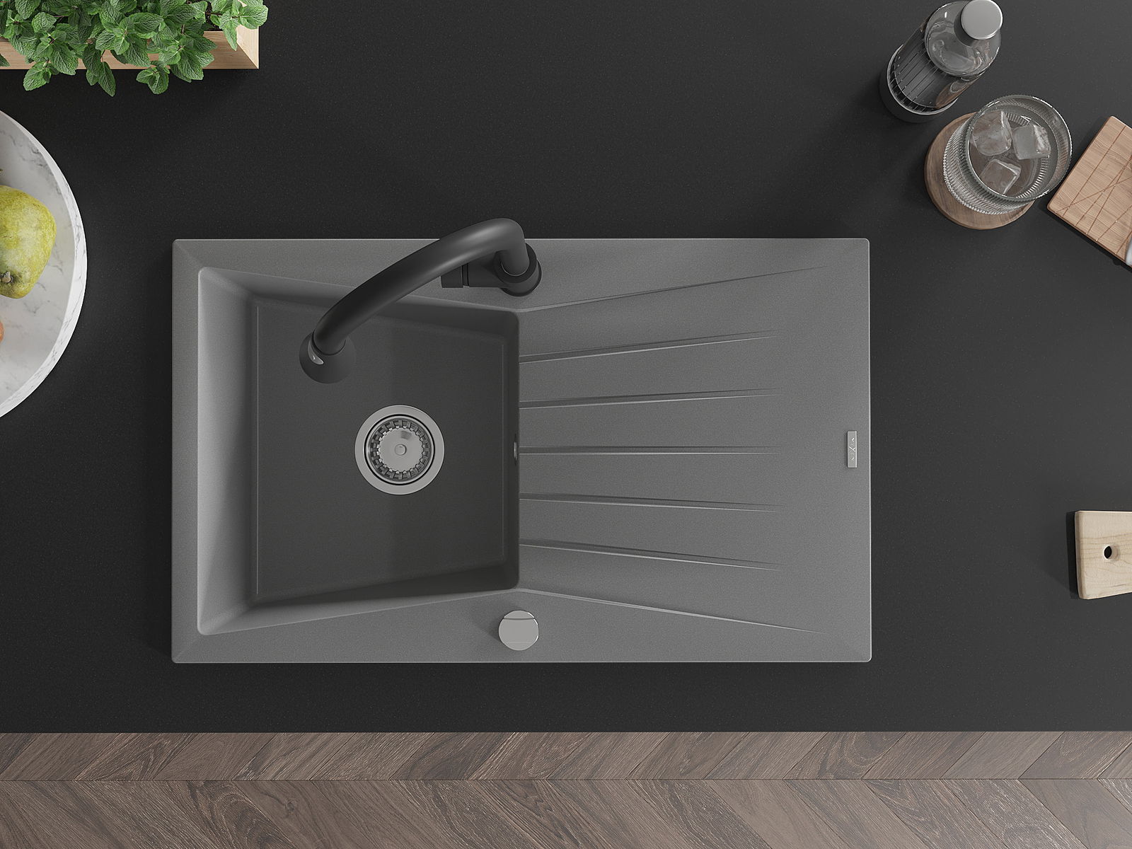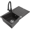 Mexen Cesar granitový dřez s 1 komorou a odkapávačem a kuchyňskou baterií Elia, šedý - 6514-71-670101-70