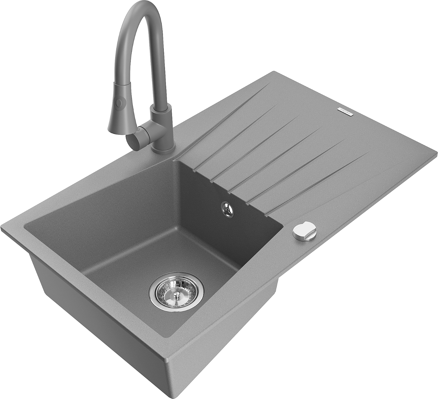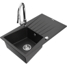 Mexen Cesar žulový dřez 1-komorový s odkapávačem a kuchyňskou baterií Elia, šedý - 6514-71-670101-71