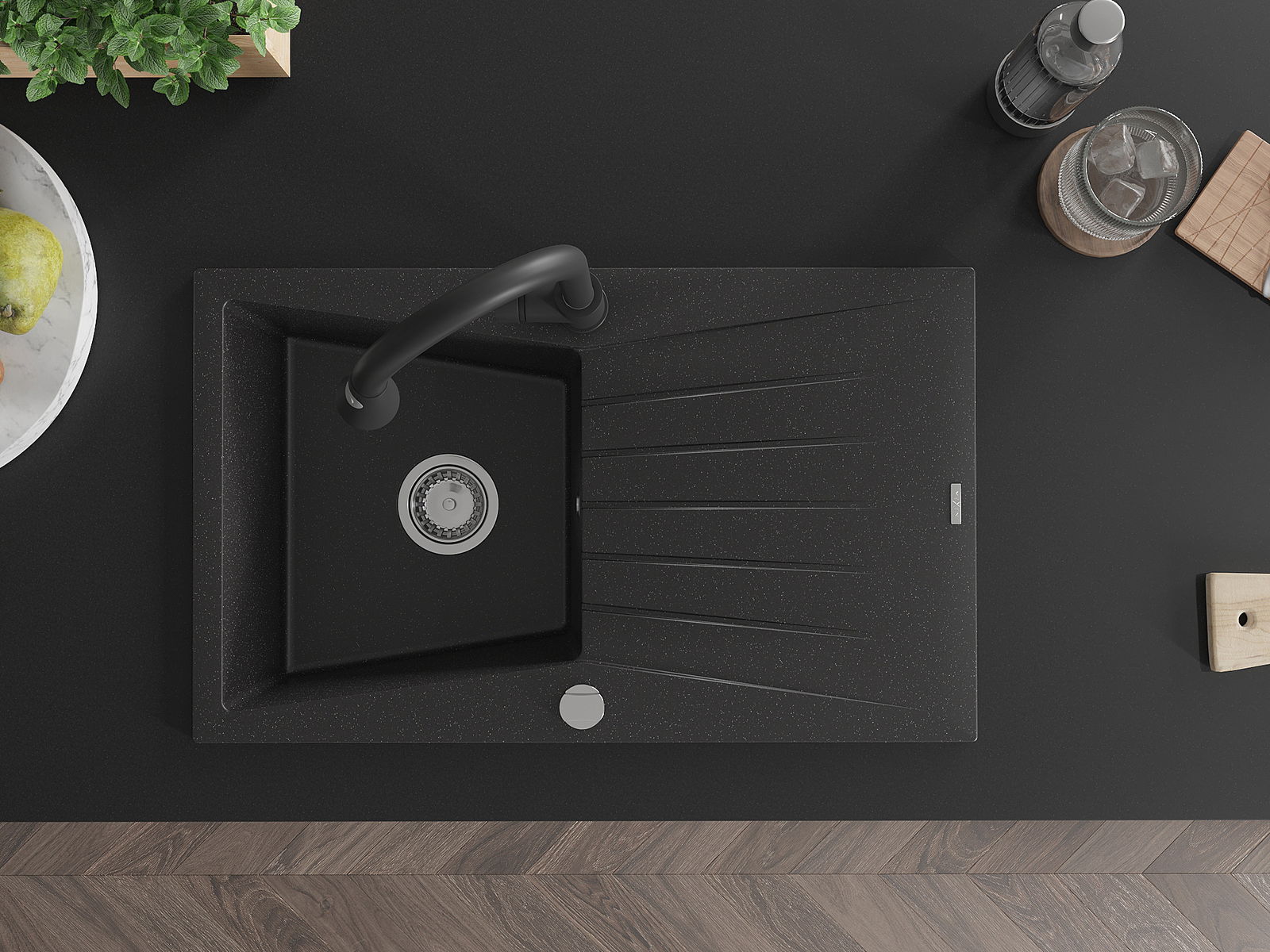 Povrch dřezu je velmi dobře vytvrzený, vyznačuje se výjimečnou odolností proti mechanickému poškození a poškrábání. Trvanlivý materiál umožňuje užívat si dobrý vzhled dřezu po mnoho let používání.