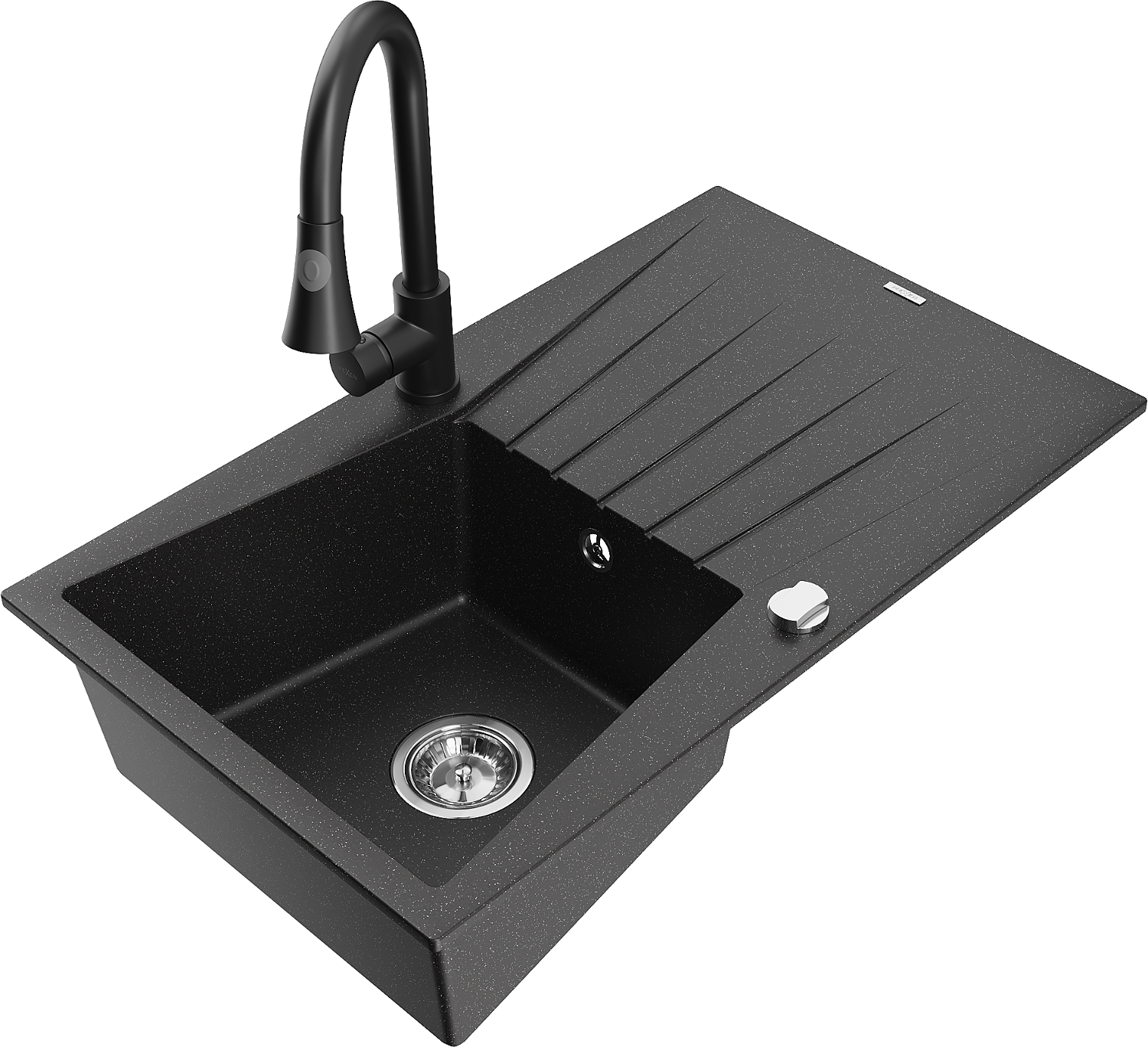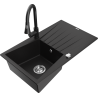 Mexen Cesar žulový dřez s 1 komorou s odkapávačem a kuchyňskou baterií Elia, černý/stříbrný metalík - 6514-73-670101-70