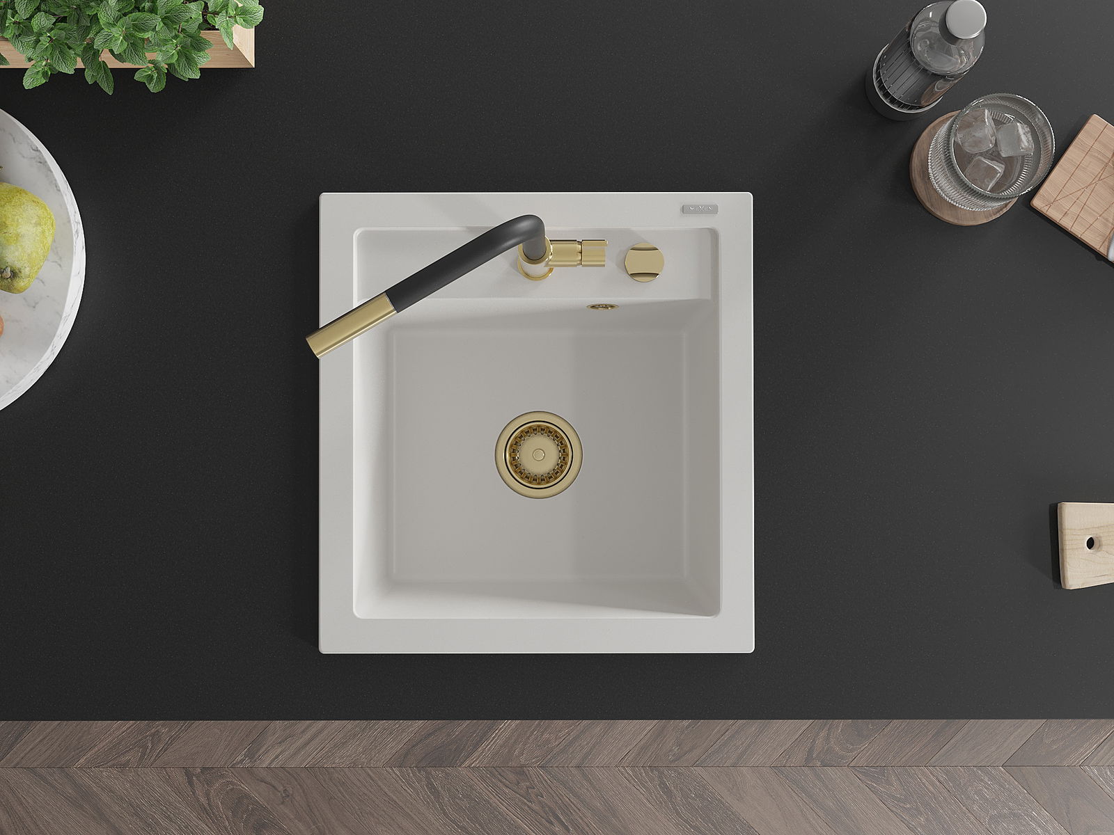Povrch dřezu je odolný proti skvrnám a zabarvení, což usnadňuje jeho čištění a zachovává jeho barvu po dlouhou dobu používání. Estetický a praktický doplněk každé kuchyně.