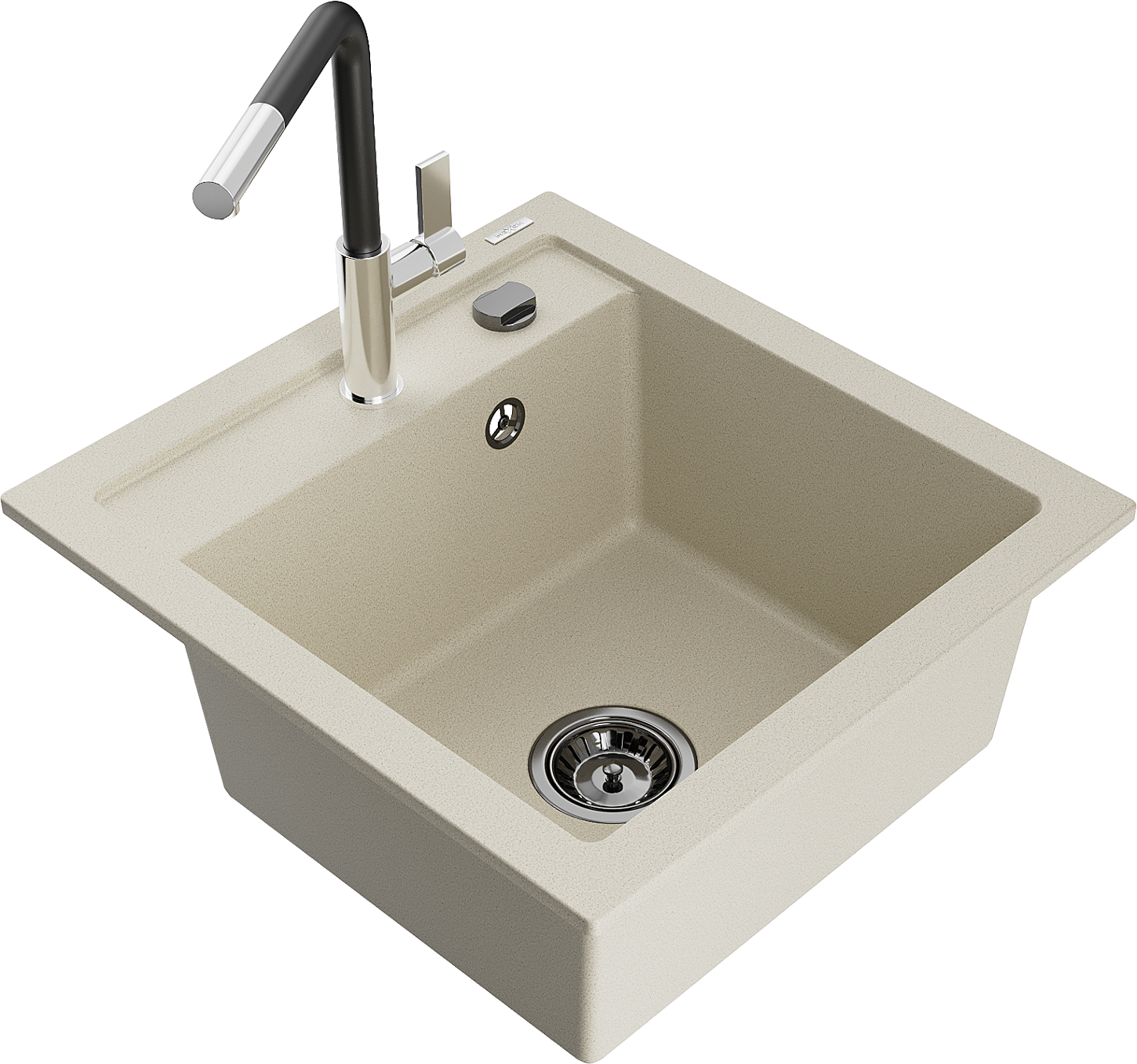 Povrch dřezu je odolný proti skvrnám a zabarvení, což usnadňuje jeho čištění a zachovává jeho barvu po dlouhou dobu používání. Estetický a praktický doplněk každé kuchyně.