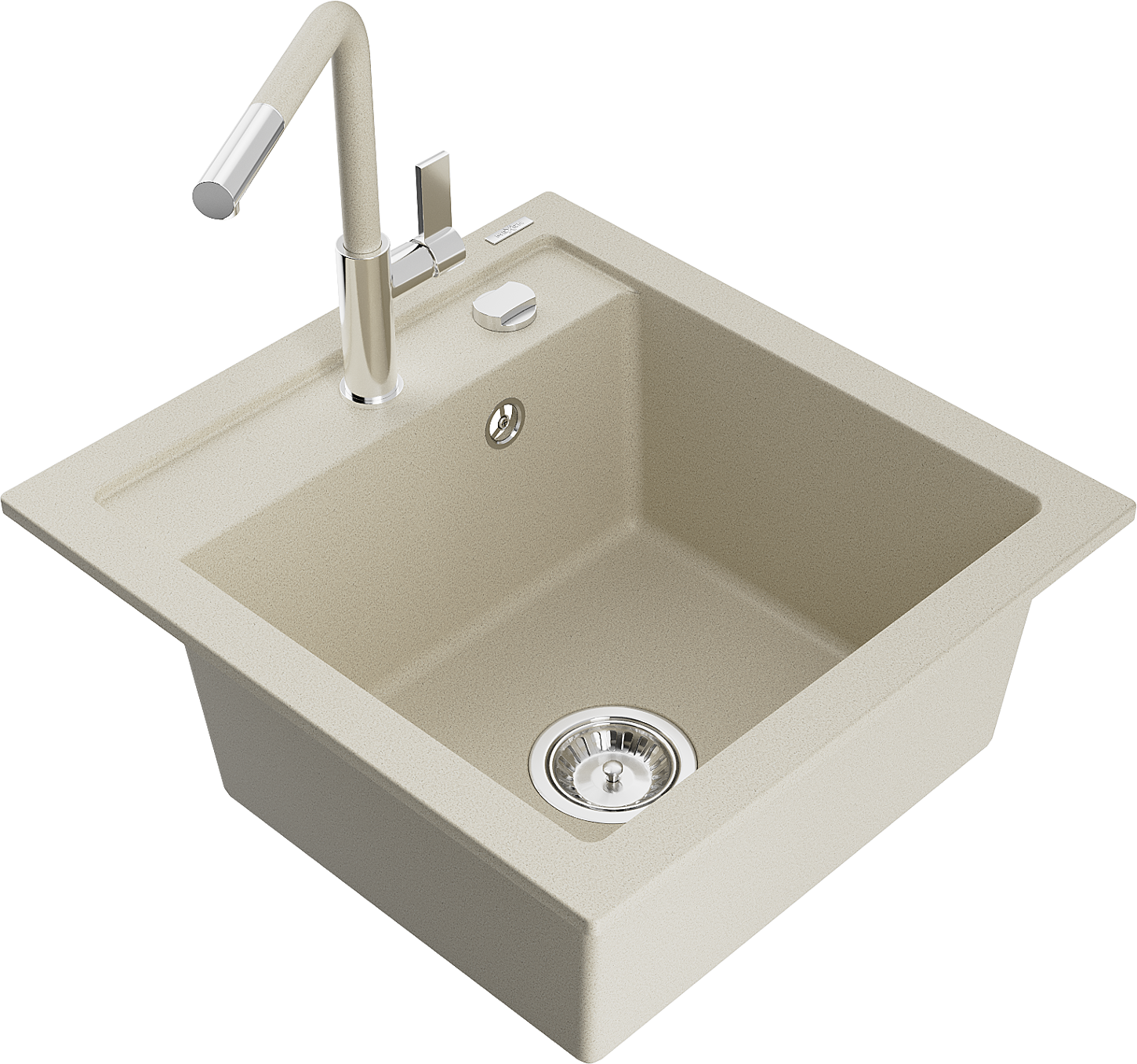 Mexen Vito granitový dřez s 1 komorou a kuchyňskou baterií Flora, béžový - 6503-69-670401-09