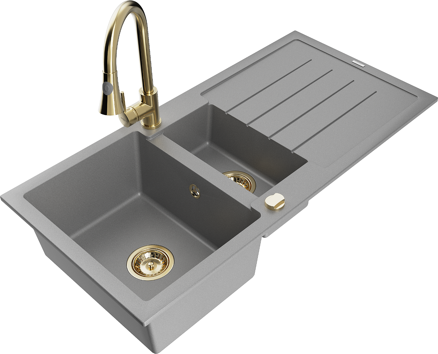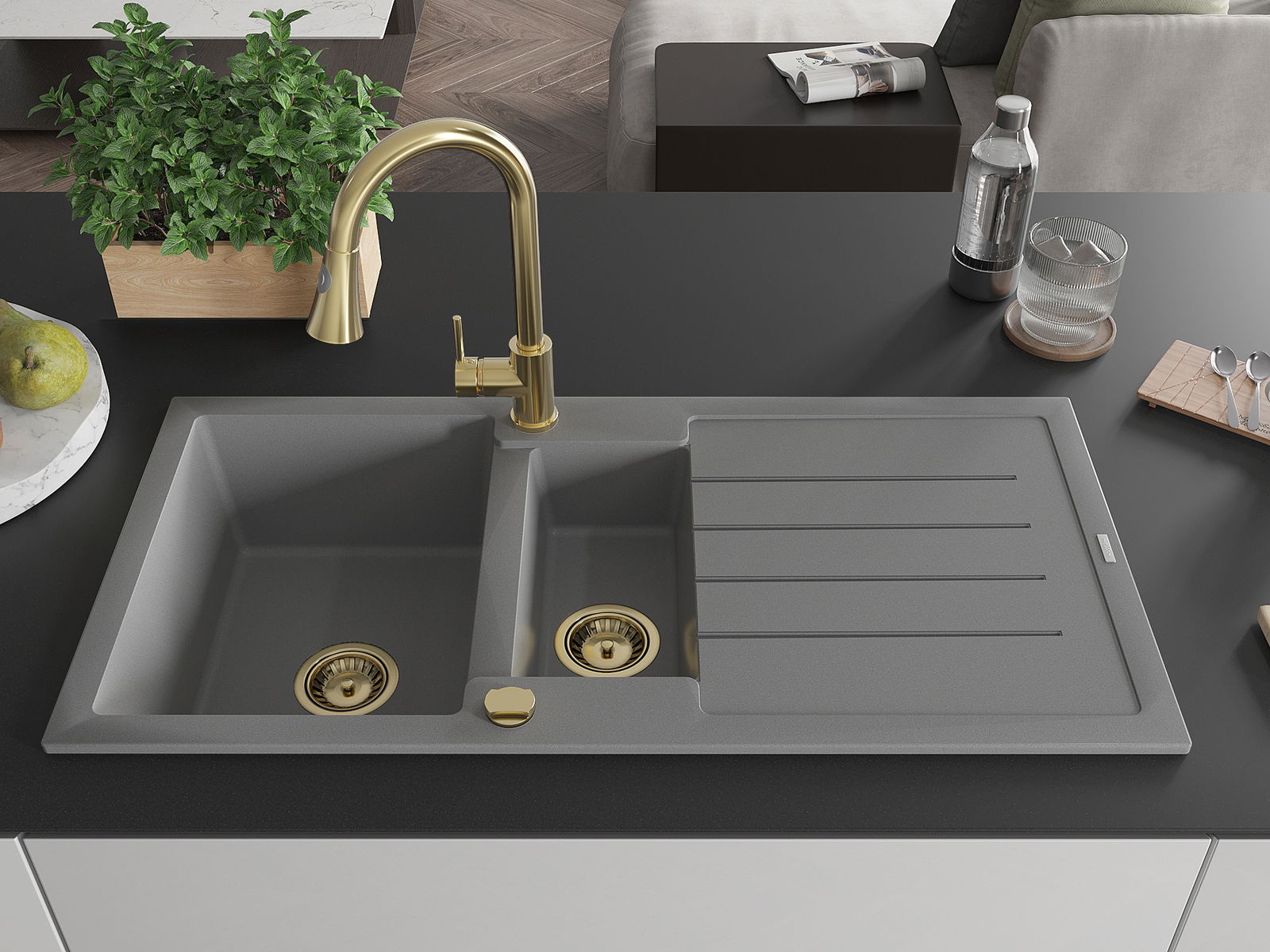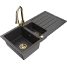 Mexen Andres granitový dřez 1,5 komory s odkapávačem a kuchyňskou baterií Elia, šedý - 6515-71-670101-50