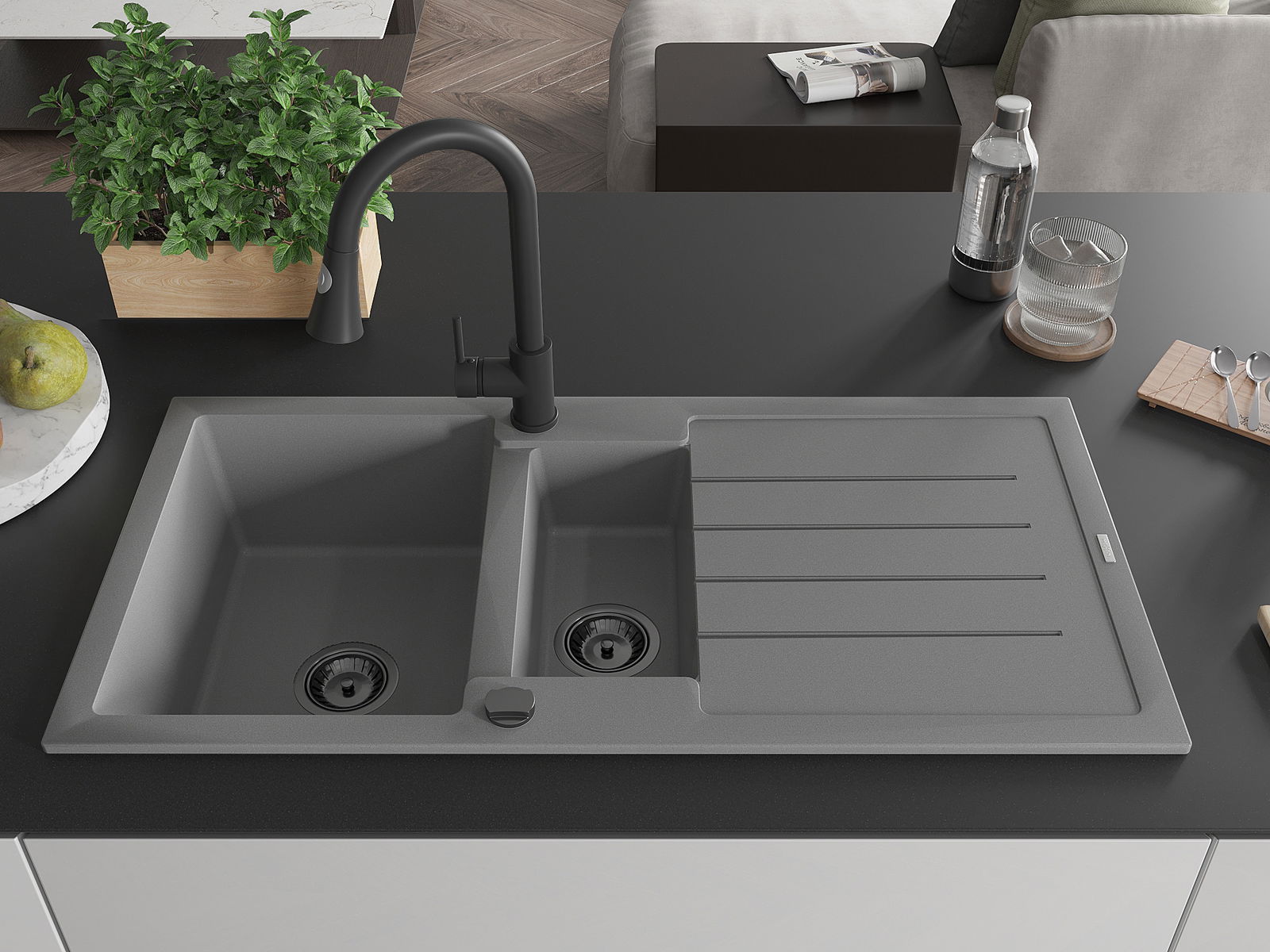 Dřez byl vyroben z vysoce kvalitního granitu. Představuje elegantní a především praktický doplněk každé kuchyně, bez ohledu na její styl. Vysoká kvalita a trvanlivost granitu zajišťují dlouholeté používání.