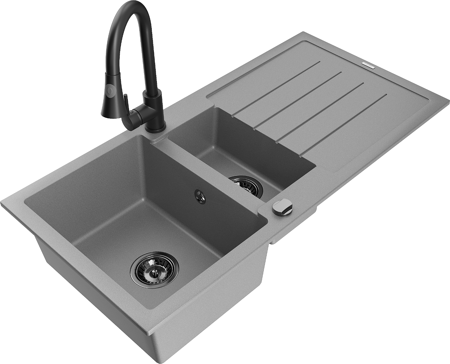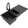 Mexen Andres dřez granitový 1,5-komorový s odkapávačem a kuchyňskou baterií Elia, šedý - 6515-71-670101-70-B