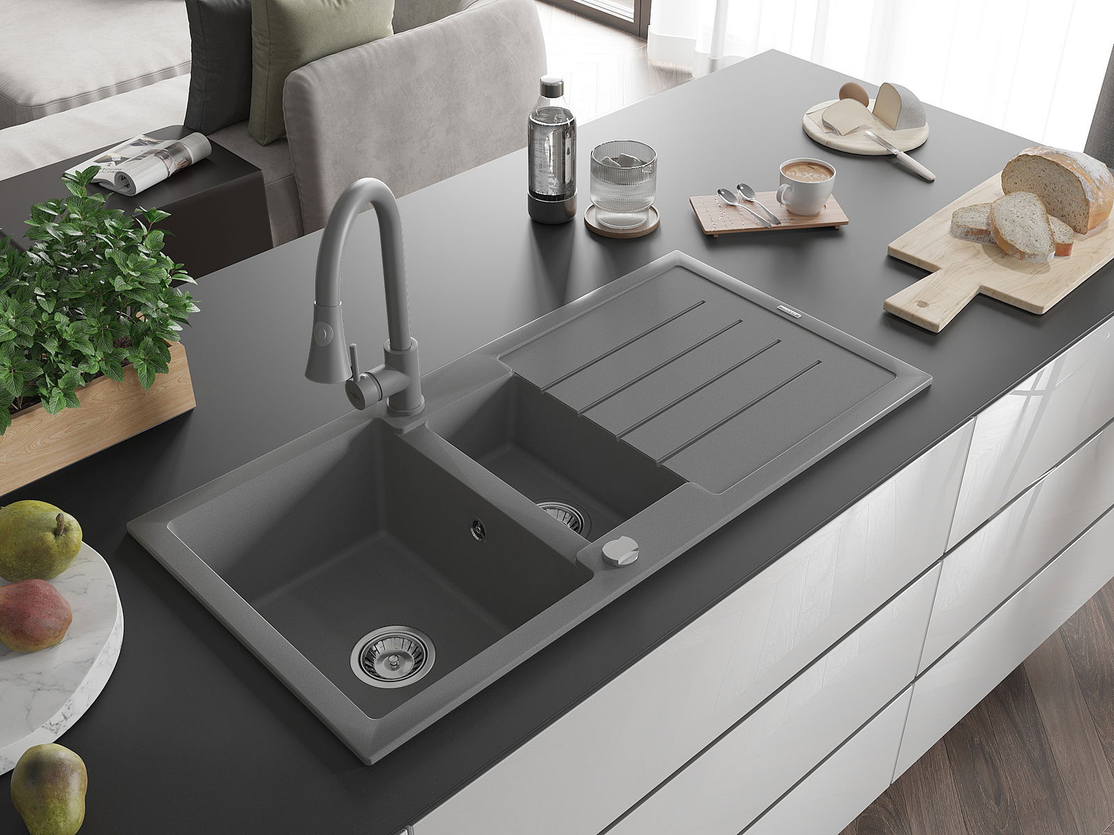 Dřez byl vyroben z vysoce kvalitního granitu. Představuje elegantní a především praktický doplněk každé kuchyně, bez ohledu na její styl. Vysoká kvalita a trvanlivost granitu zajišťují dlouholeté používání.