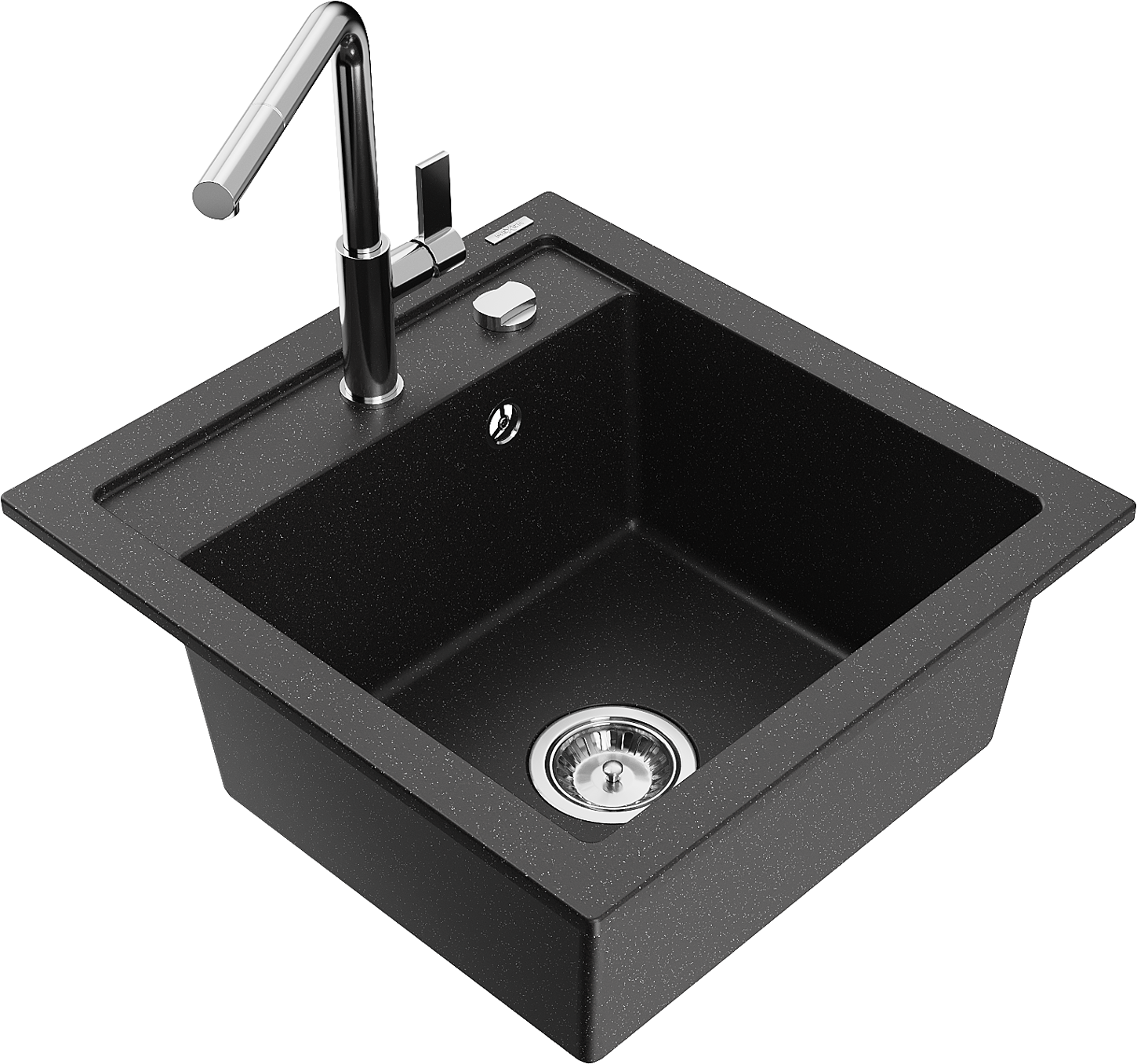 Mexen Vito granitový dřez 1-komorový s kuchyňskou baterií Flora, černý/stříbrný metalik - 6503-73-670401-00