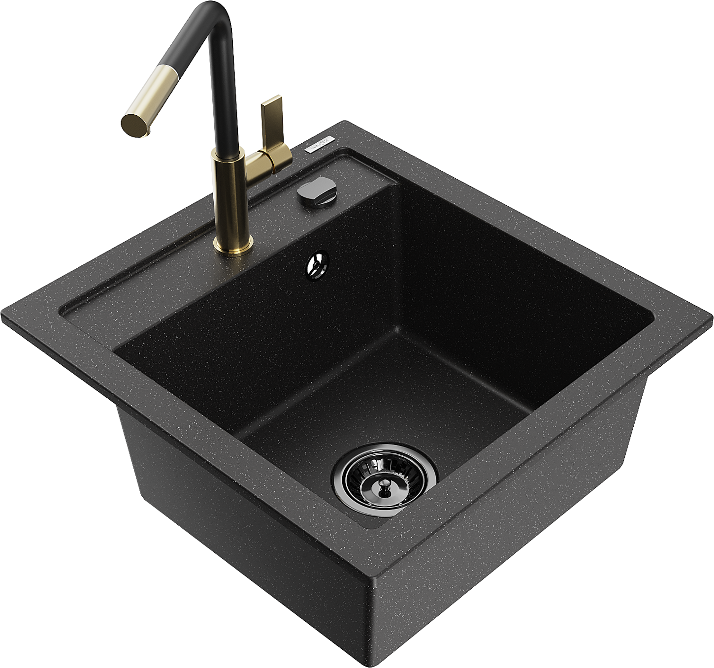 Mexen Vito granitový dřez 1-komorový s kuchyňskou baterií Flora, černý/stříbrný metalický - 6503-73-670401-57-B
