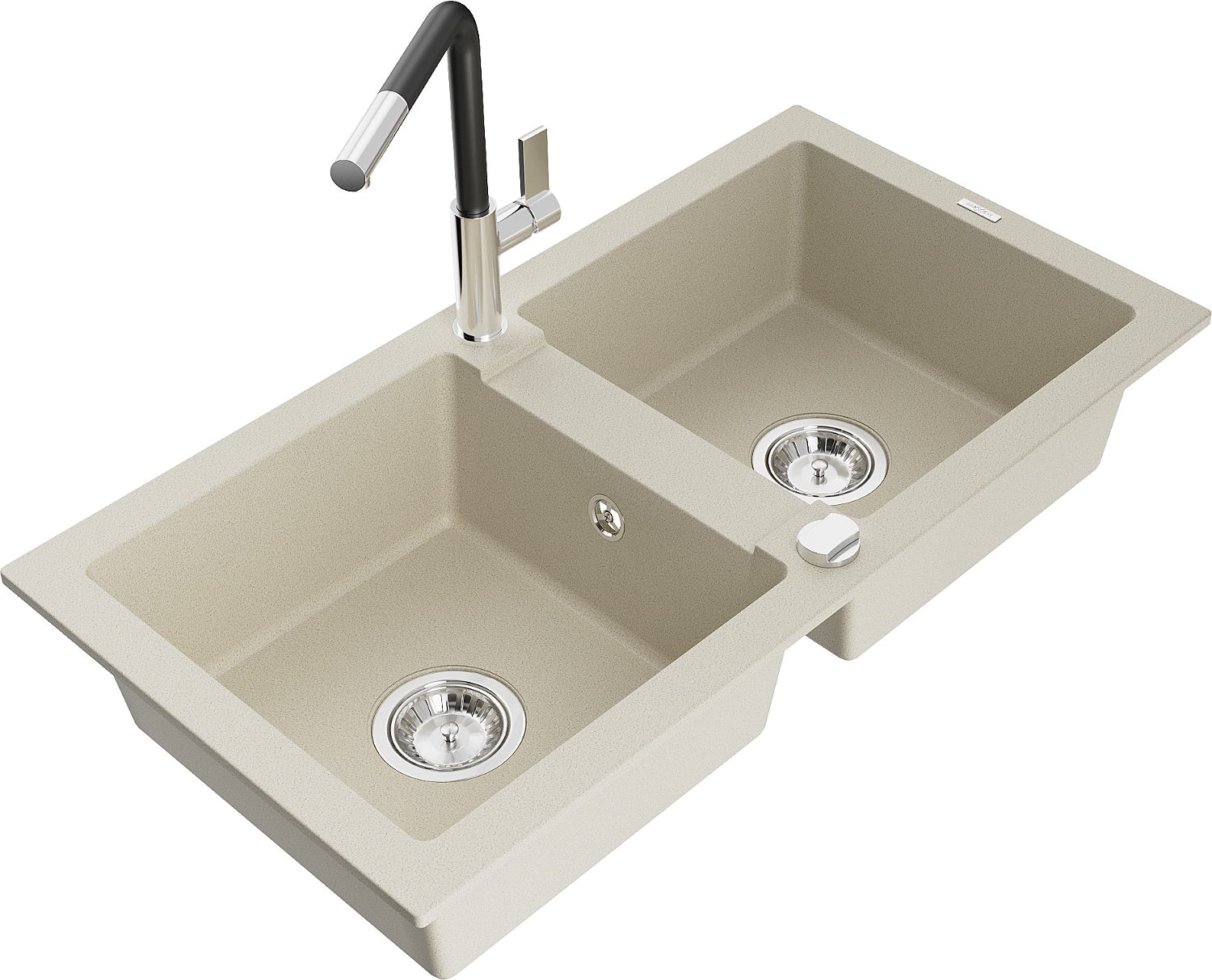 Mexen Mario granitový dřez 2-komorový s kuchyňskou baterií Flora, béžový - 6504-69-670401-07