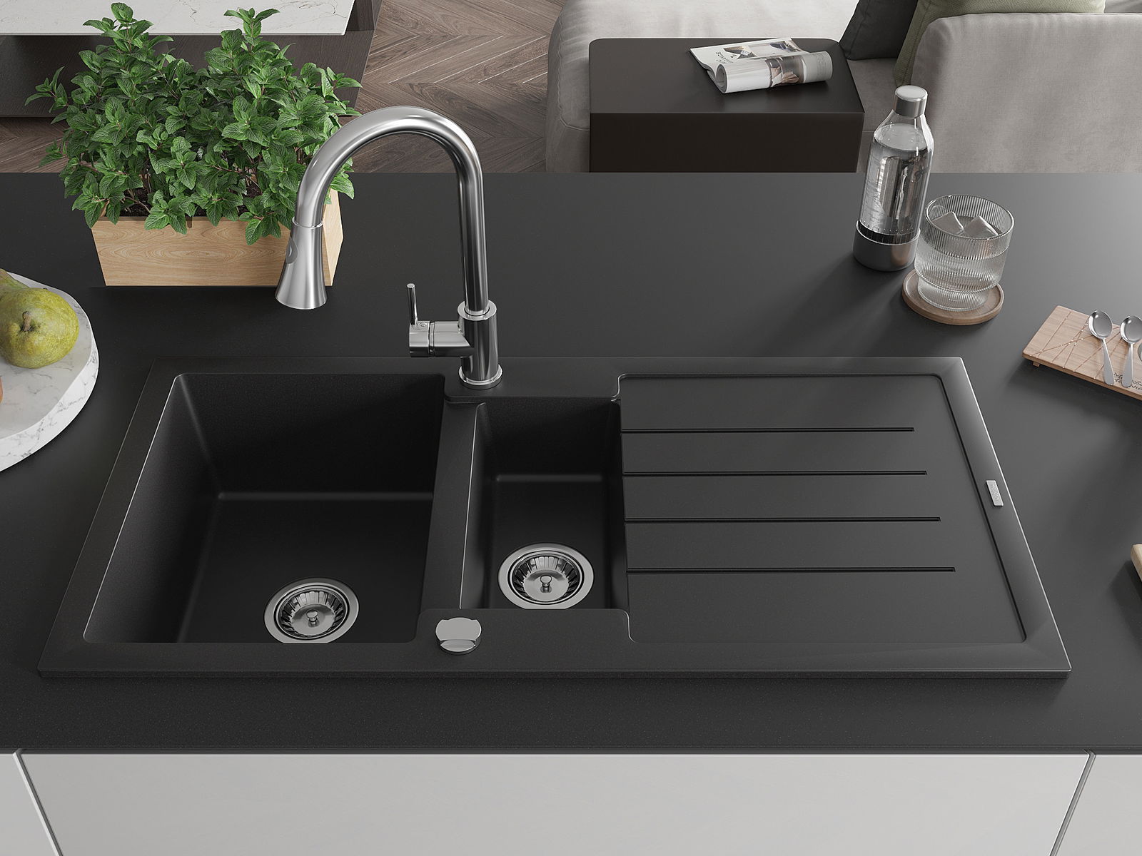 Dřez byl vyroben z vysoce kvalitního granitu. Představuje elegantní a především praktický doplněk každé kuchyně, bez ohledu na její styl. Vysoká kvalita a trvanlivost granitu zajišťují dlouholeté používání.