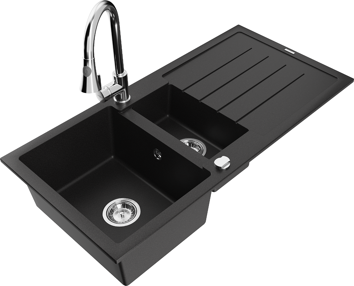 Mexen Andres granitový dřez 1,5-komorový s odkapávačem a kuchyňskou baterií Elia, černý - 6515-77-670101-00