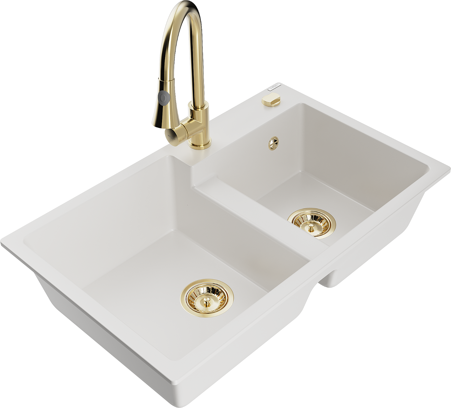 Mexen Tomas dvojitý granitový dřez s kuchyňskou baterií Elia, bílý - 6516-20-670101-50