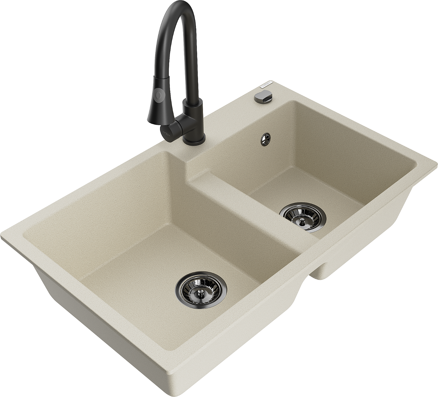 Mexen Tomas granitový dřez 2-komorový s kuchyňskou baterií Elia, béžový - 6516-69-670101-70