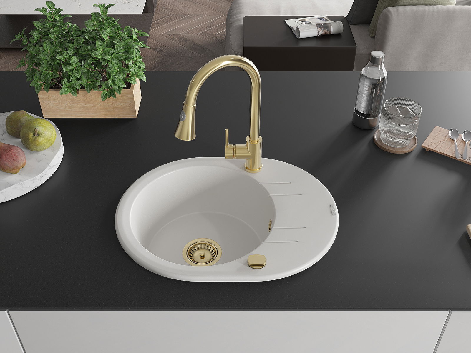 Dřez byl vyroben z vysoce kvalitního granitu. Představuje elegantní a především praktický doplněk každé kuchyně, bez ohledu na její styl. Vysoká kvalita a trvanlivost granitu zajišťují dlouholeté používání.