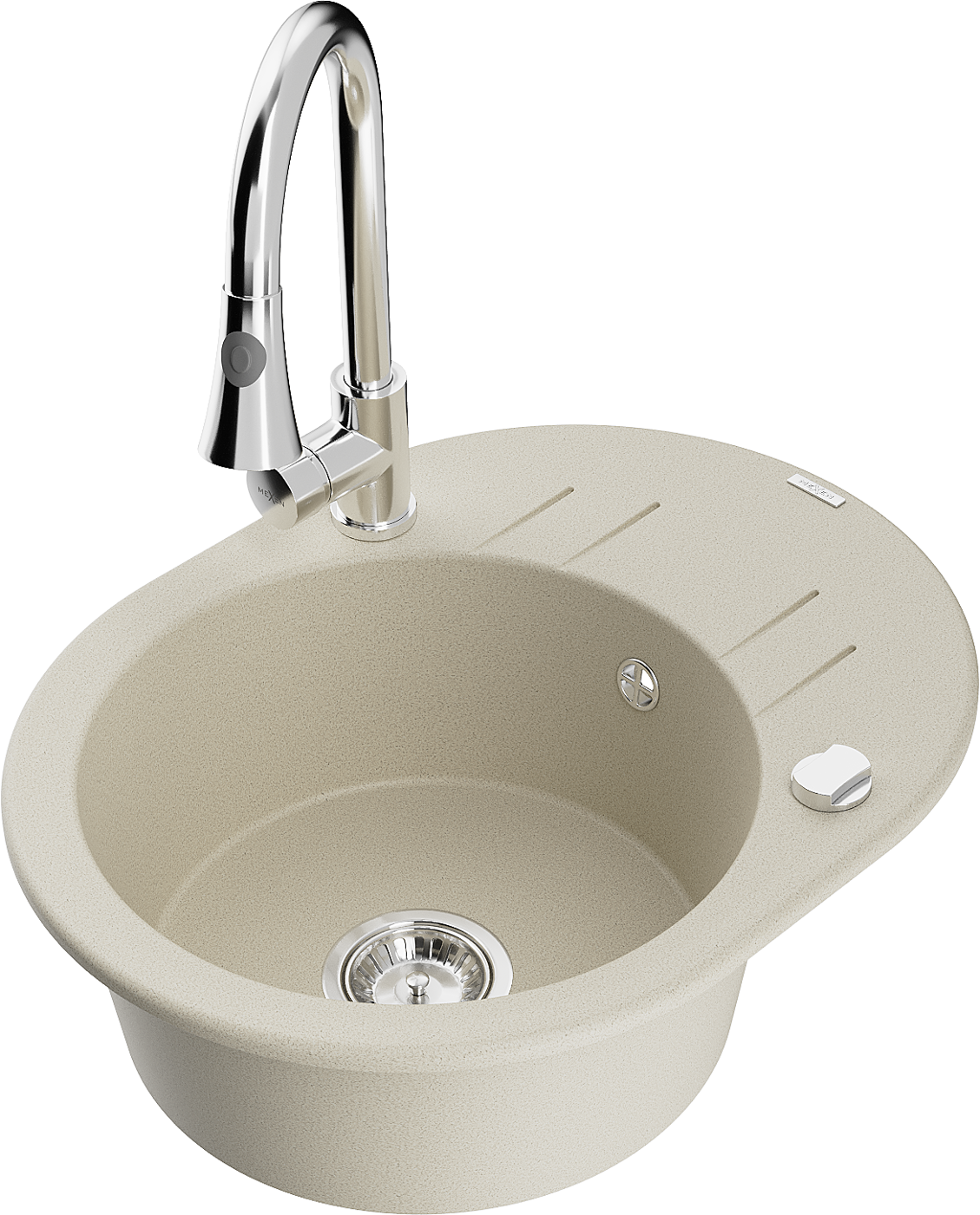 Mexen Kevin granitový dřez 1-komorový s odkapávačem a kuchyňskou baterií Elia, béžový - 6517-69-670101-00