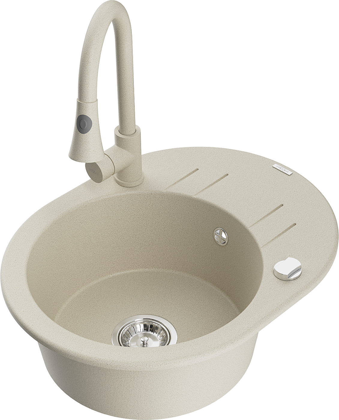Mexen Kevin granitový dřez 1-komorový s odkapávačem a kuchyňskou baterií Elia, béžový - 6517-69-670101-69