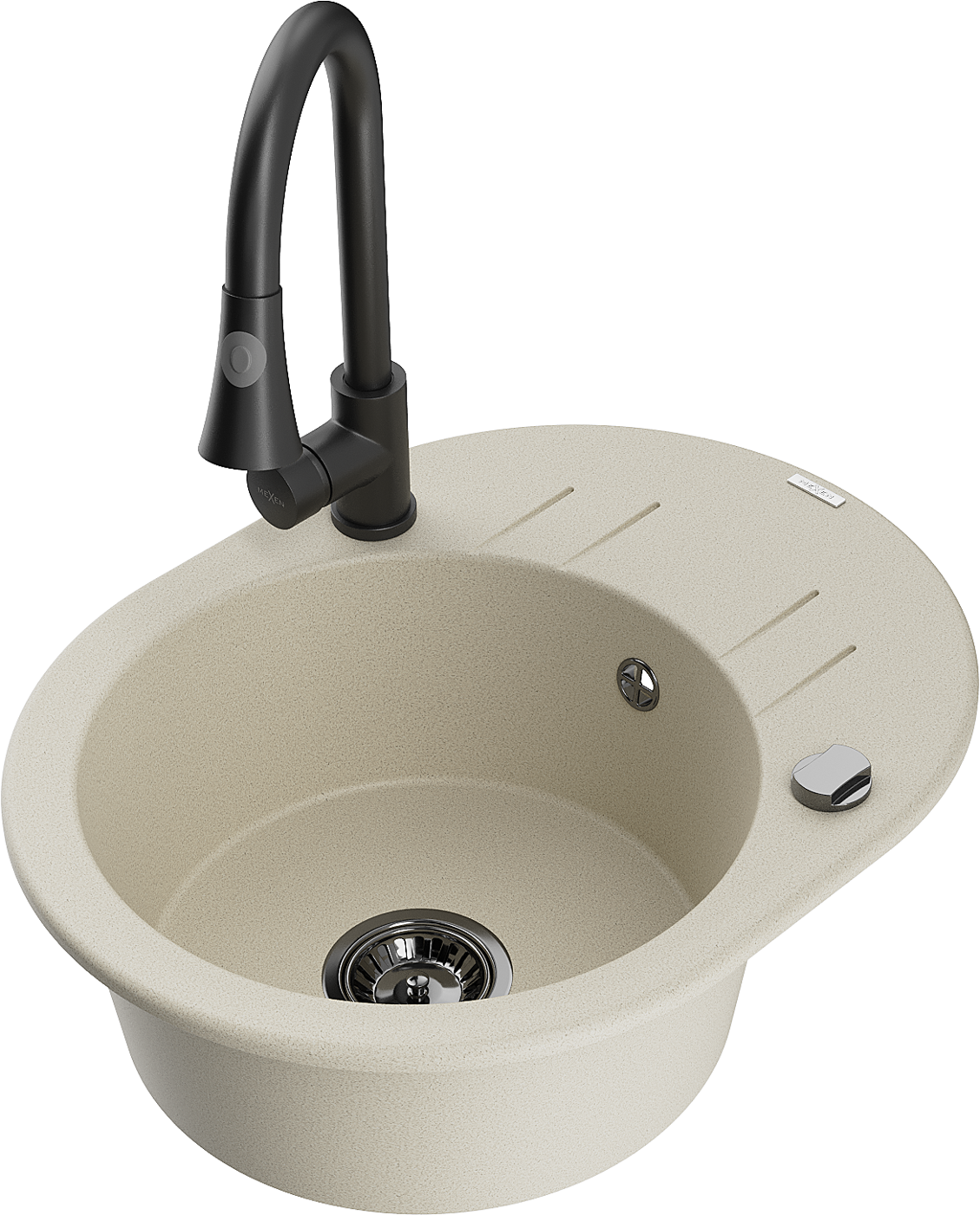 Mexen Kevin granitový dřez 1-komorový s odkapávačem a kuchyňskou baterií Elia, béžový - 6517-69-670101-70